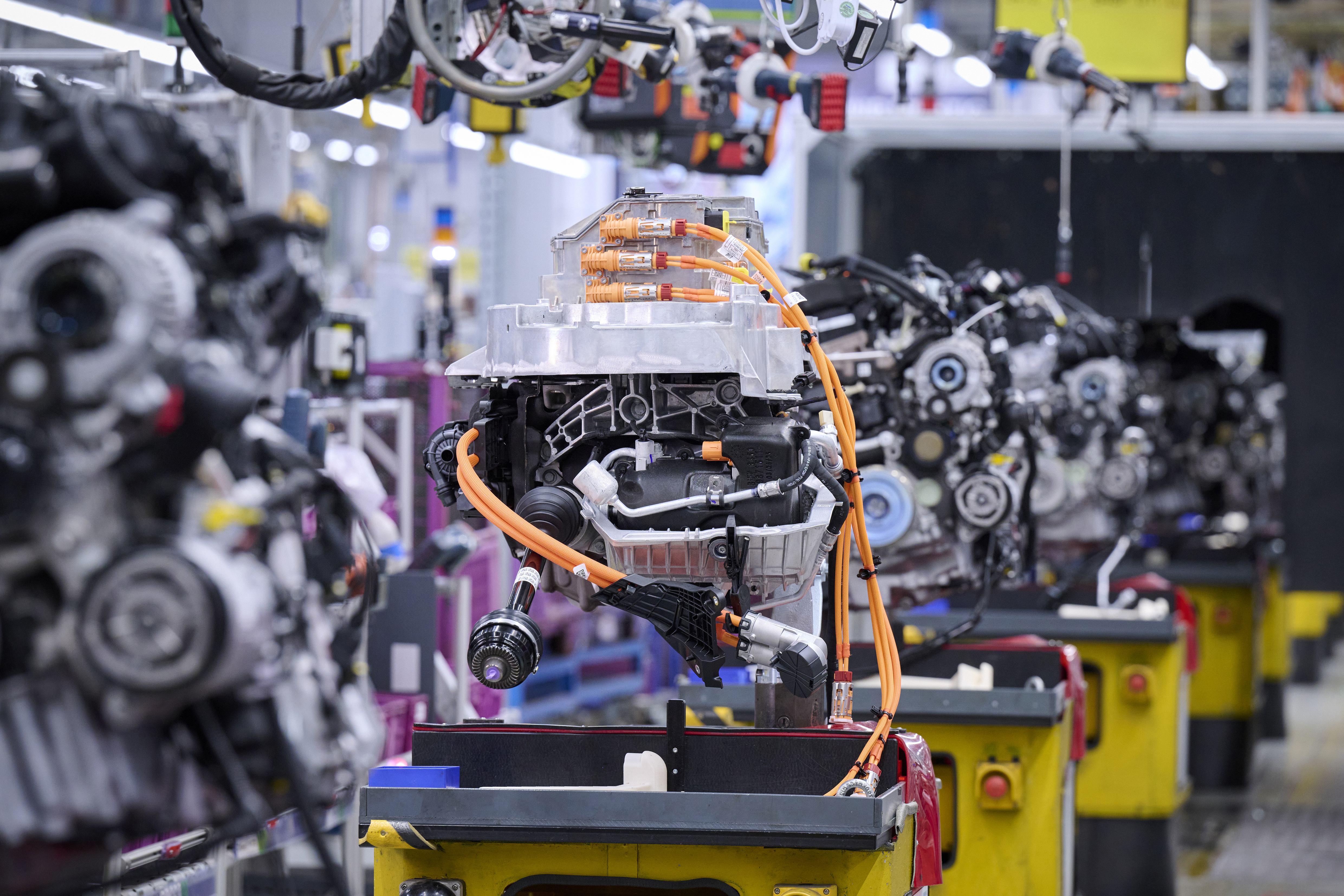 Transmission-engine unit of the fully-electric BMW iX1 on the engine line (11/2022).