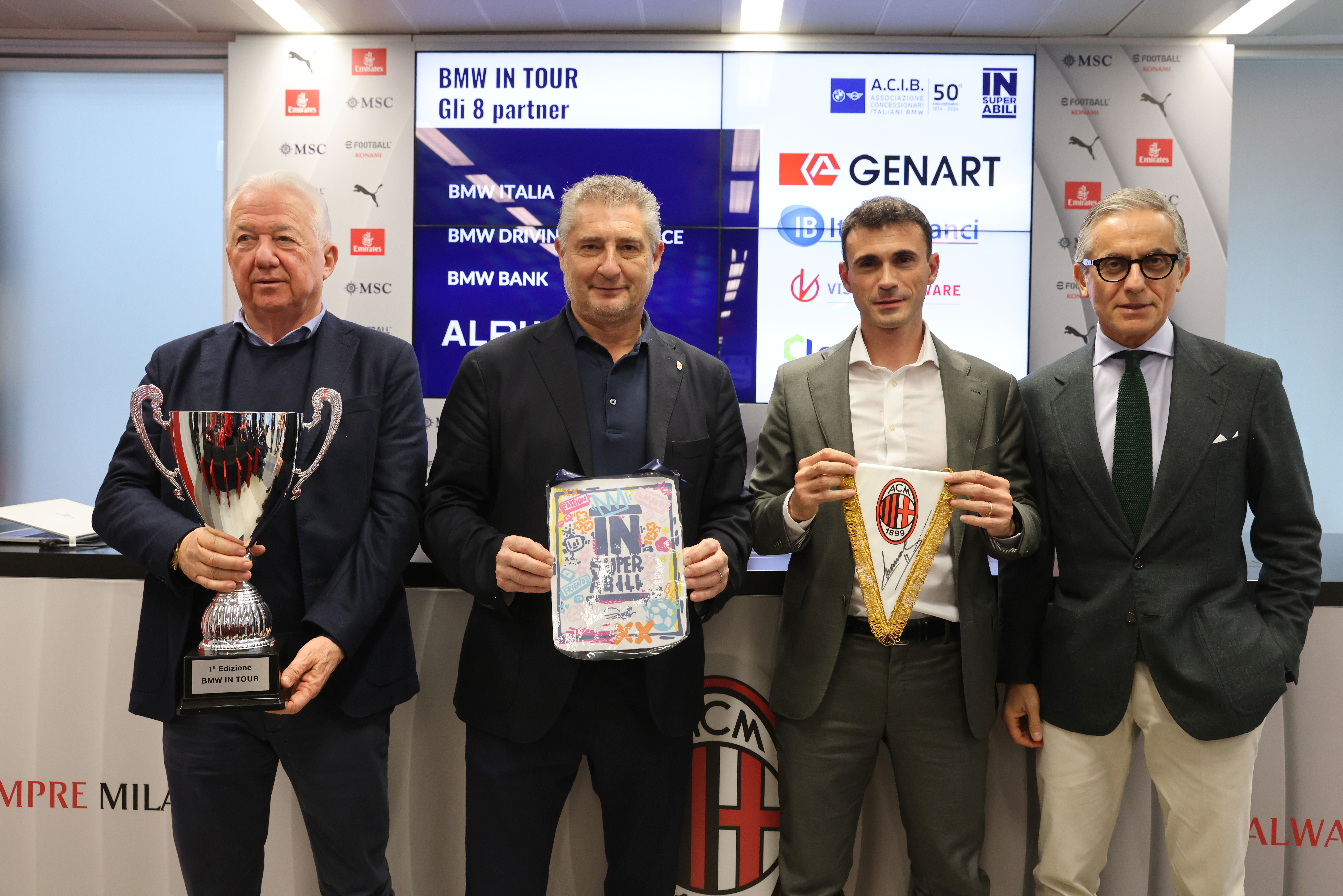 MILAN, ITALY - NOVEMBER 19: Enzo Zarattini, Massimiliano De Silvestre, Daniele Massaro and Davide Leonardi attend the AC Milan & BMW Event at Casa Milan on November 19, 2024 in Milan, Italy. (Photo by Vincenzo Lombardo/AC Milan via Getty Images) (11/2024)