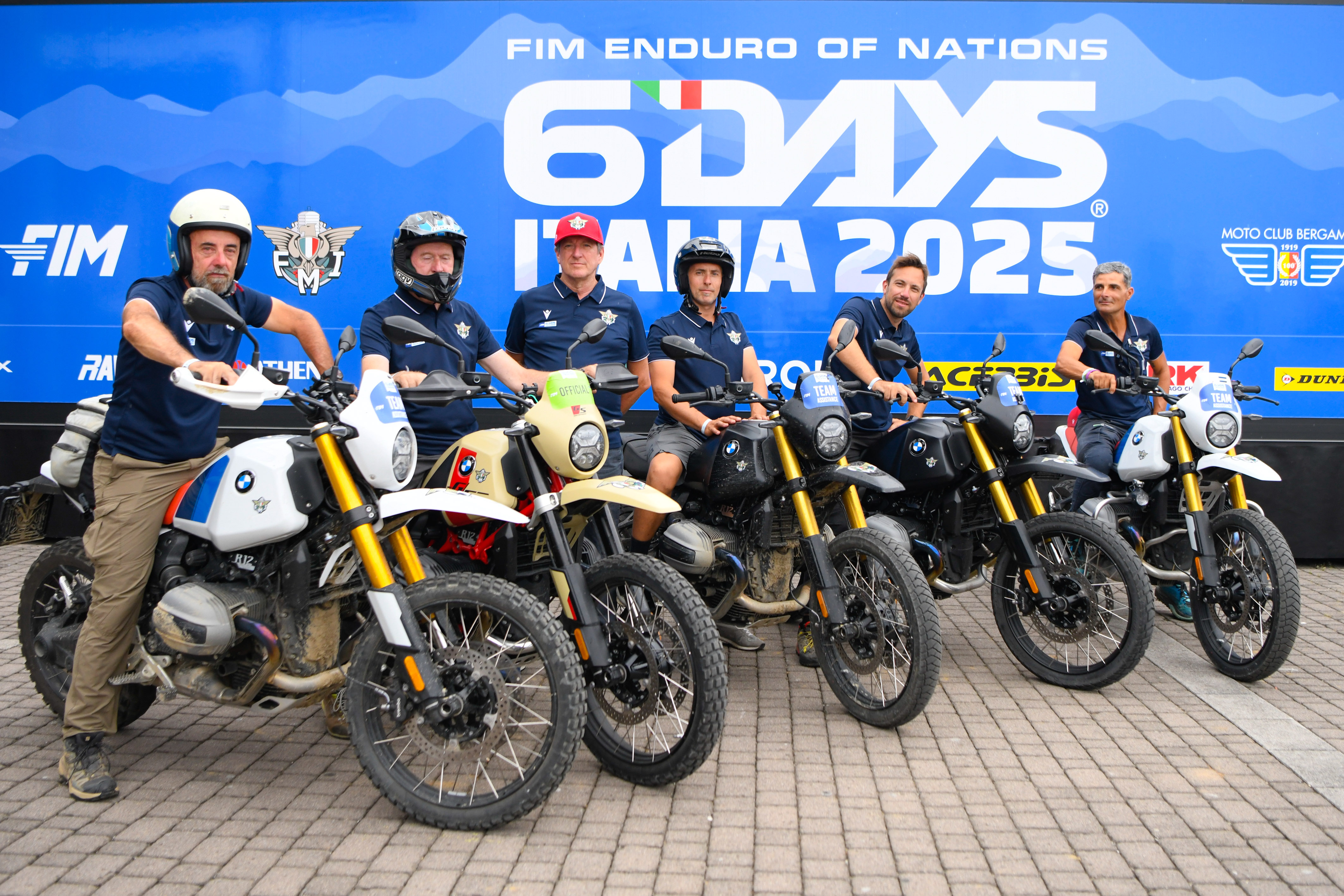 FMI President Giovanni Copioli and FMI technicians with the BMW R 12 G/S at the Six Days 2025 in Bergamo (I). (07/2025)