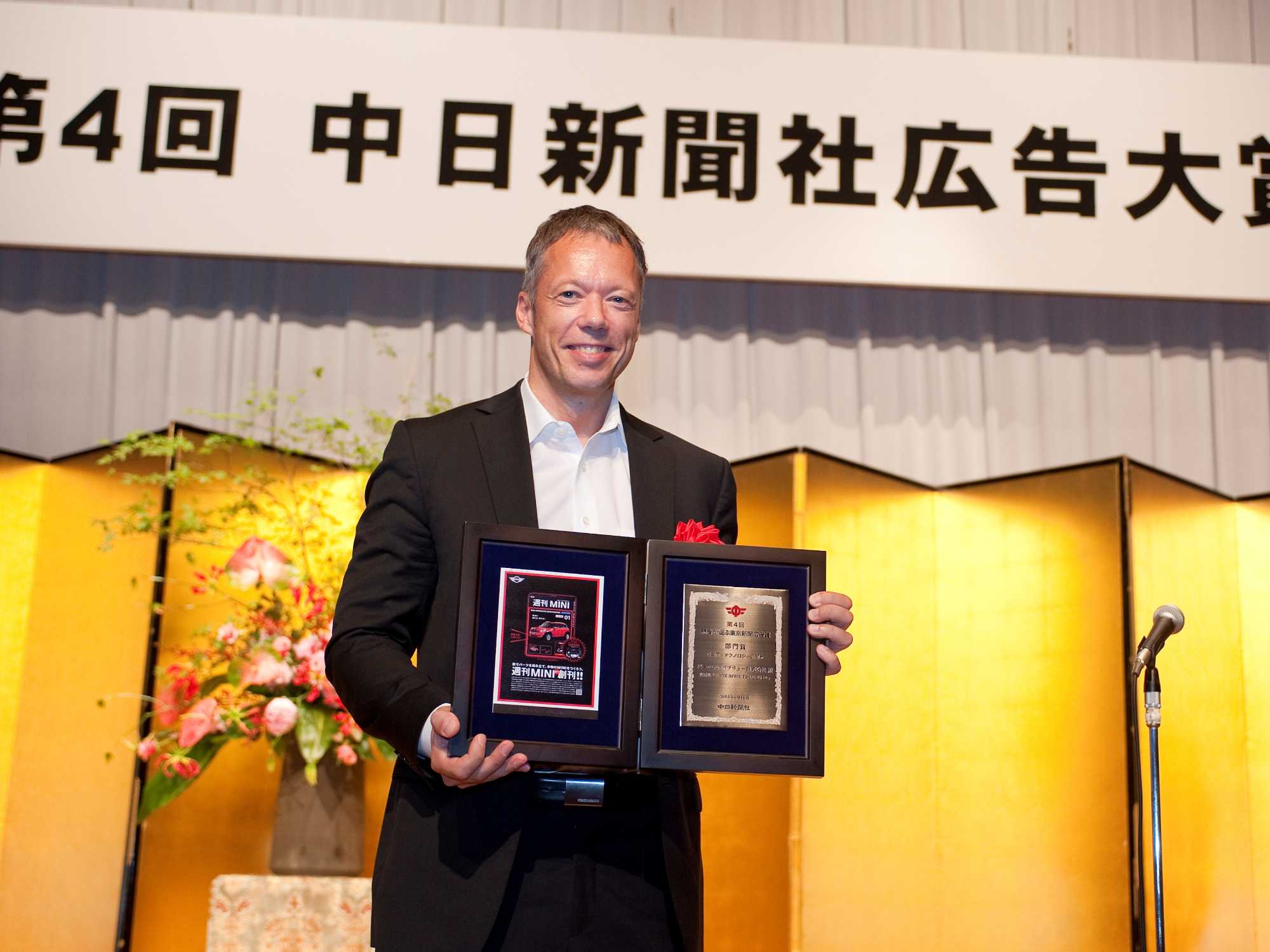 ビー・エム・ダブリュー株式会社(代表取締役社長: アラン・ハリス)は、同社の扱うブランドMINIが作成した広告、「週刊 MINI 4月1日創刊!!」が第4回中日新聞社広告大賞、一般紙の部 「読者が選ぶ東京新聞広告賞 車両・テクノロジー部門賞」を受賞したと発表した。