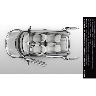 Aerial view of MINI Concept Frankfurt with wide opening side and rear doors (computer generated image) (09/2005)