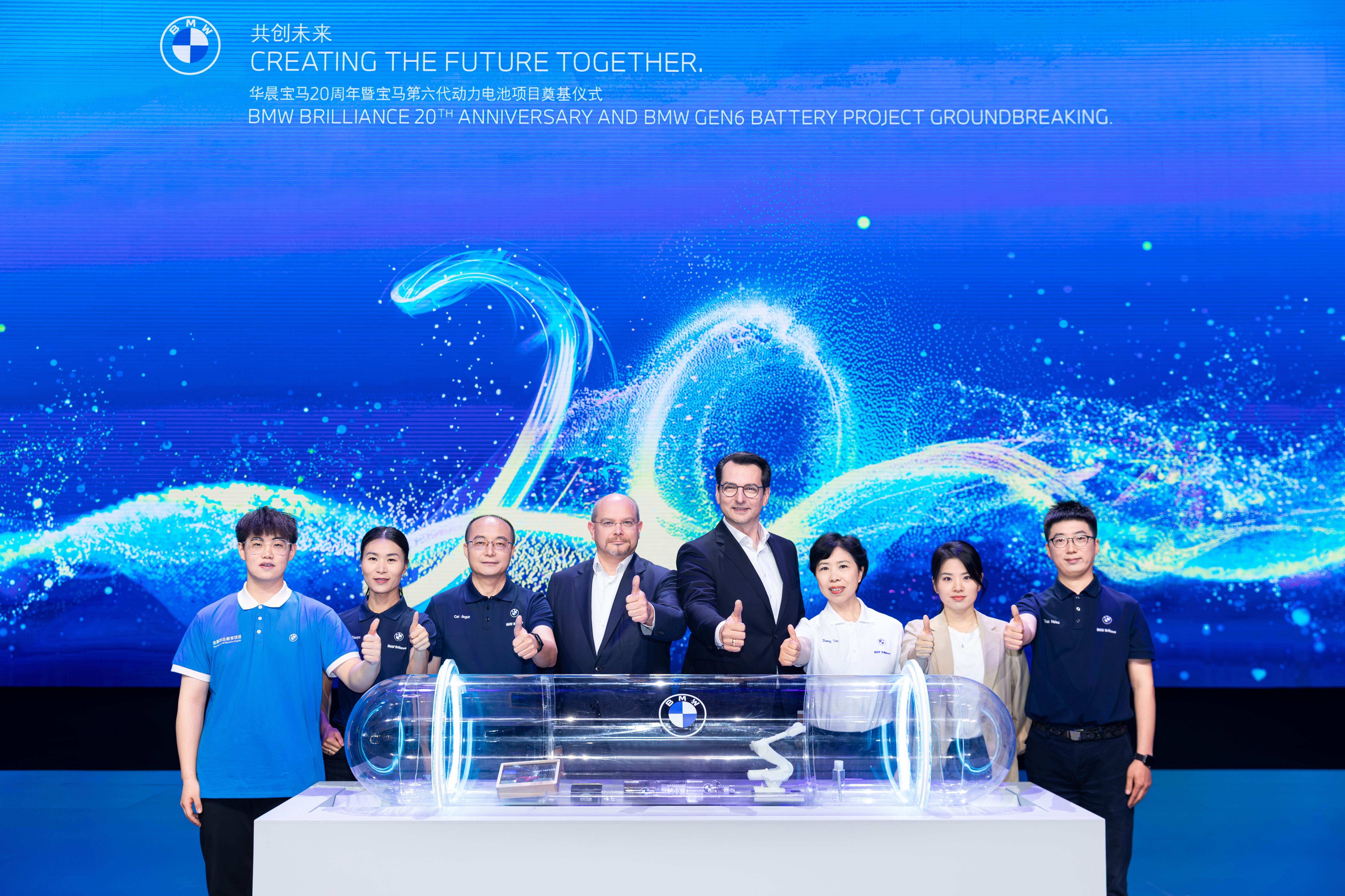 BMW AG Board Members Dr. Milan Nedeljkovic (Production) and Walter Mertl (Finance) celebrate BMW Brilliance's 20th Anniversary with associates in China
