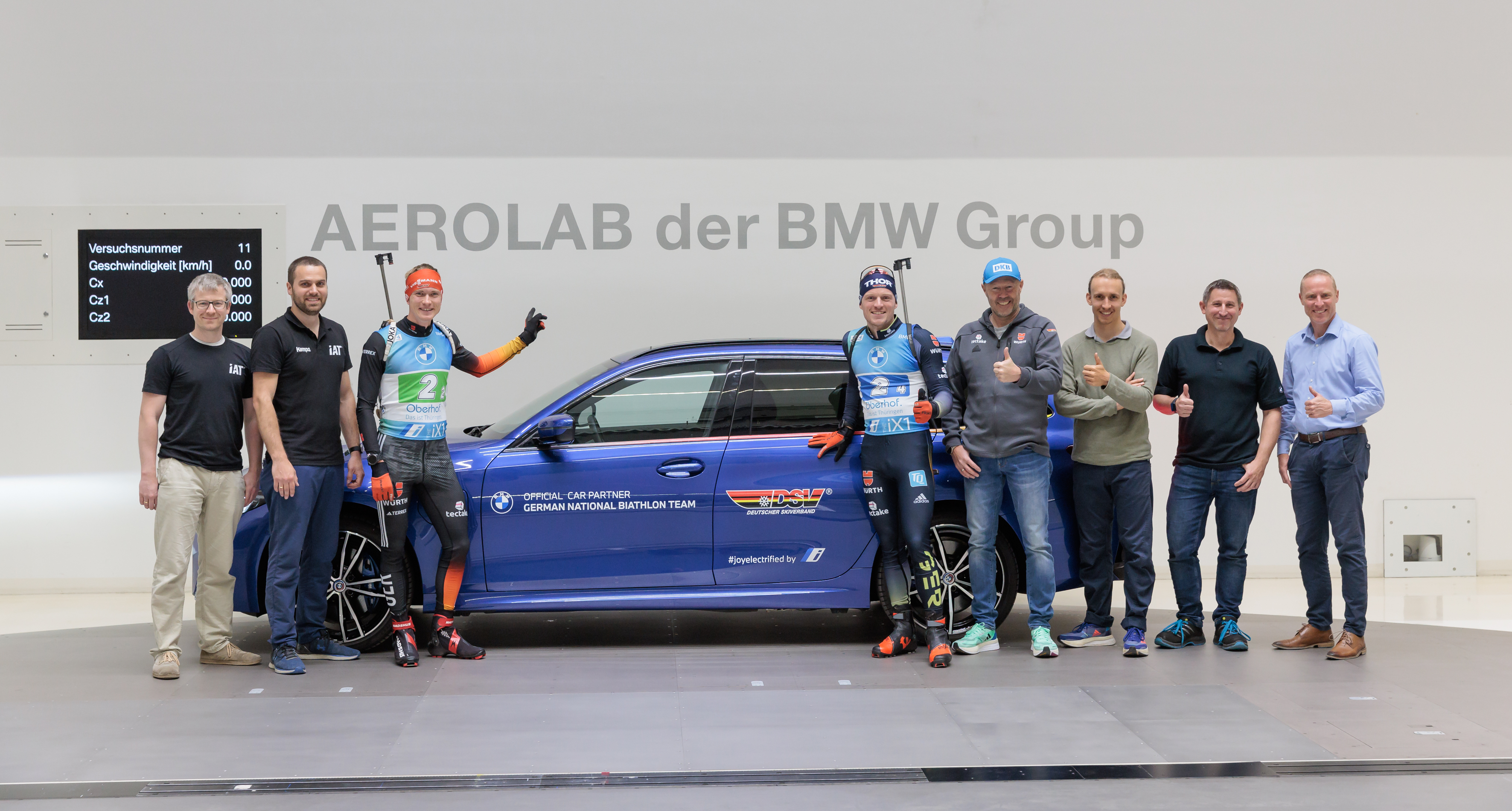 German men's biathlon team tests in the BMW Group wind tunnel.