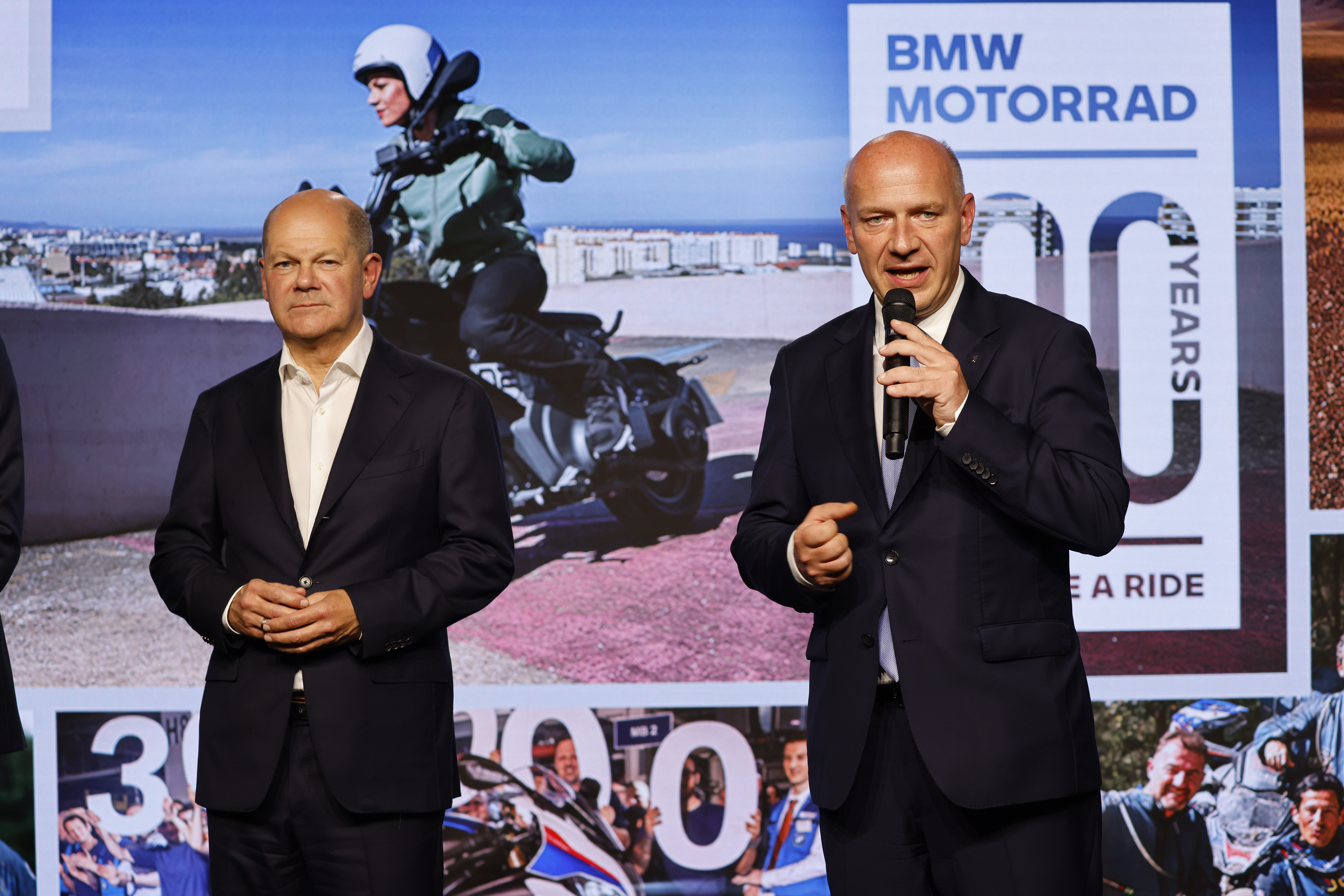 Opening of the BMW Motorrad Welt in Berlin. Olaf Scholz, Federal Chancellor of the Federal Republic of Germany and Kai Wegner, Governing Mayor of Berlin. (09/2023)