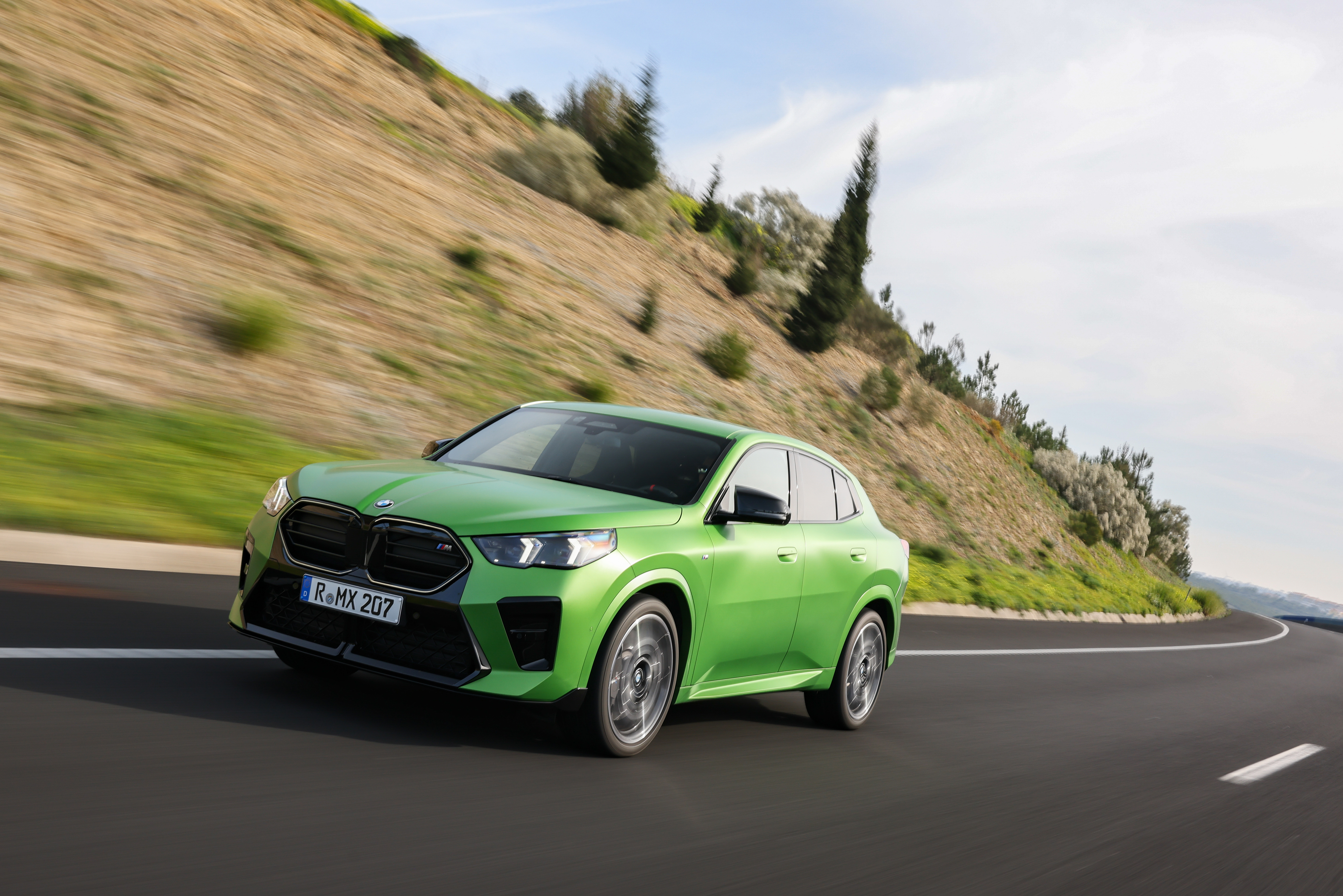 The new BMW X2 M35i xDrive, Frozen Tampa Bay Green - Driving. (02/2024)
