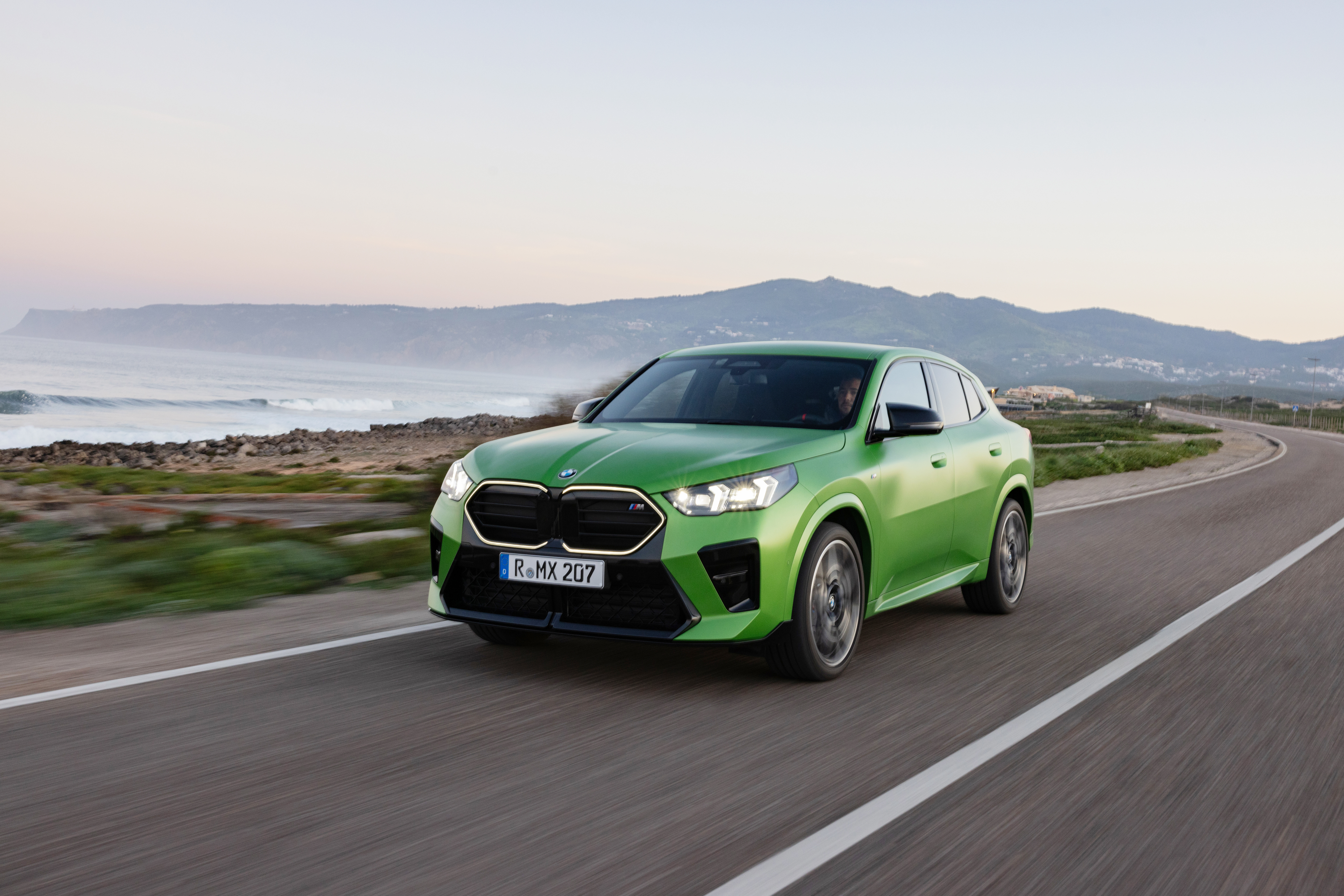 The new BMW X2 M35i xDrive, Frozen Tampa Bay Green - Driving. (02/2024)