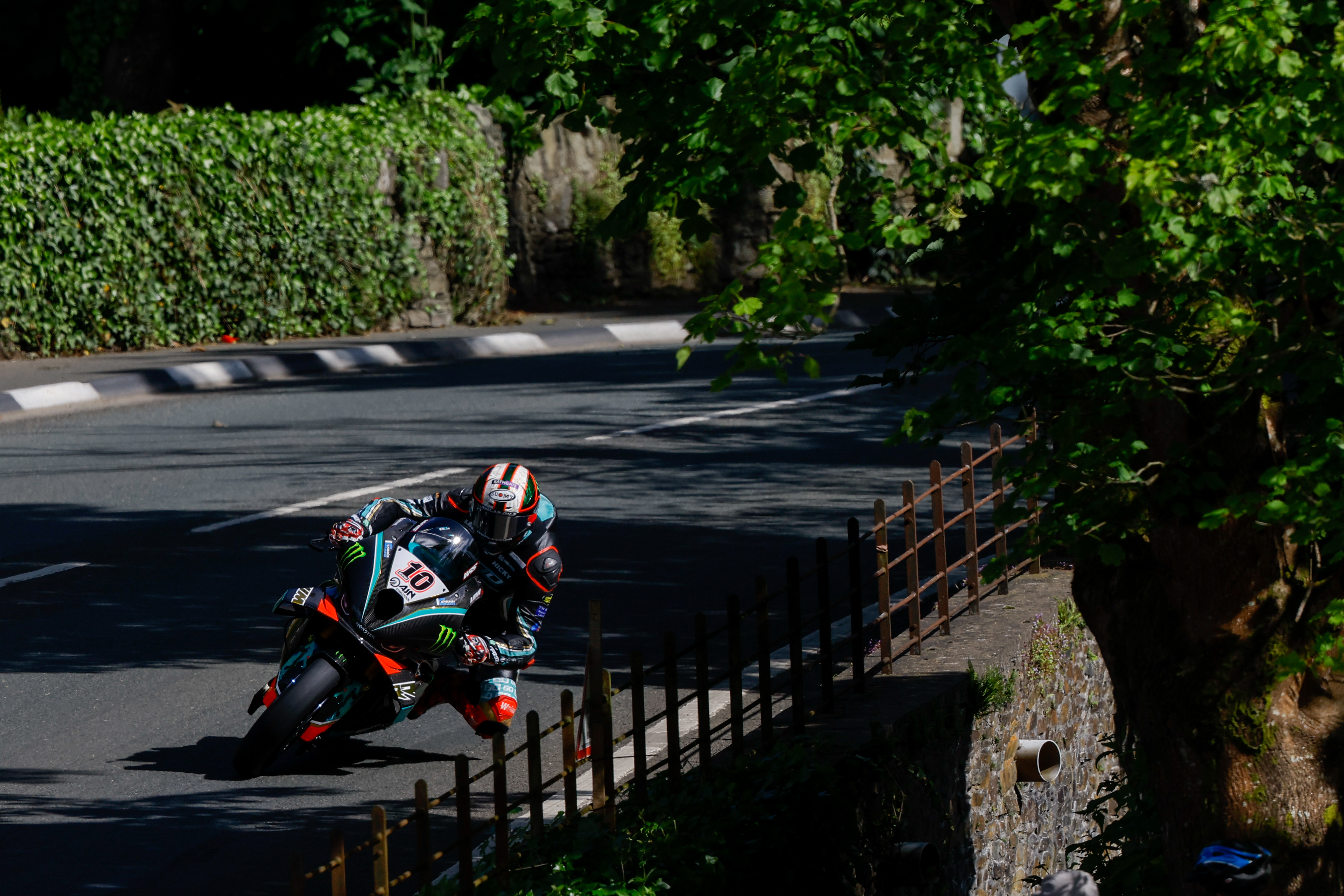 Isle of Man, June 2024. BMW Motorrad Motorsport, Isle of Man Tourist Trophy, IoMTT, Monster Energy BMW by FHO Racing, #10 BMW M 1000 RR, Peter Hickman (GBR). Photo by Double Red