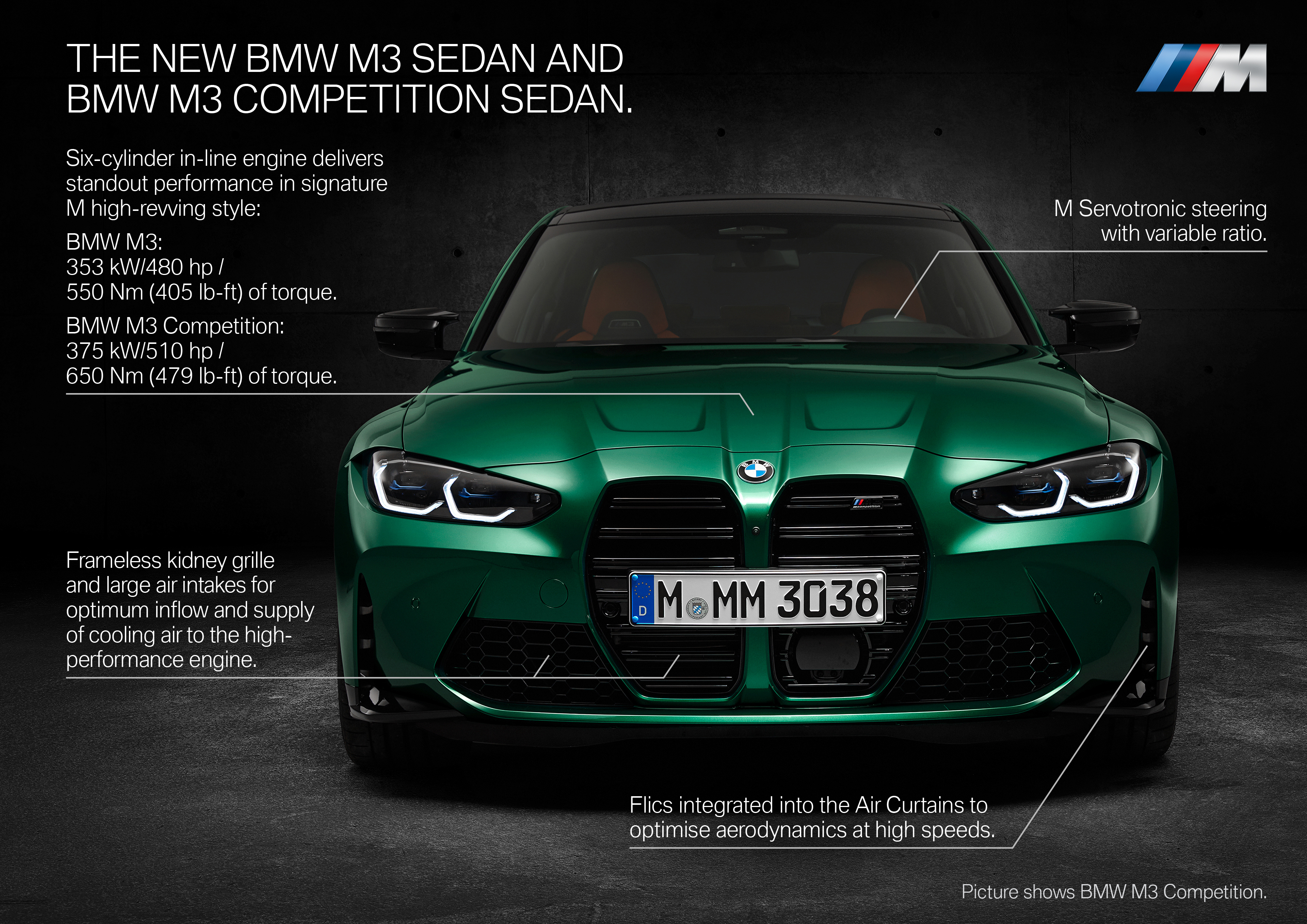 BMW M3 Competition Sedan (Fuel consumption combined: 9.8 – 9.6 l/100 km [28.8 – 29.4 mpg imp] in WLTP; CO2 emissions combined: 224 – 219 g/km in WLTP).