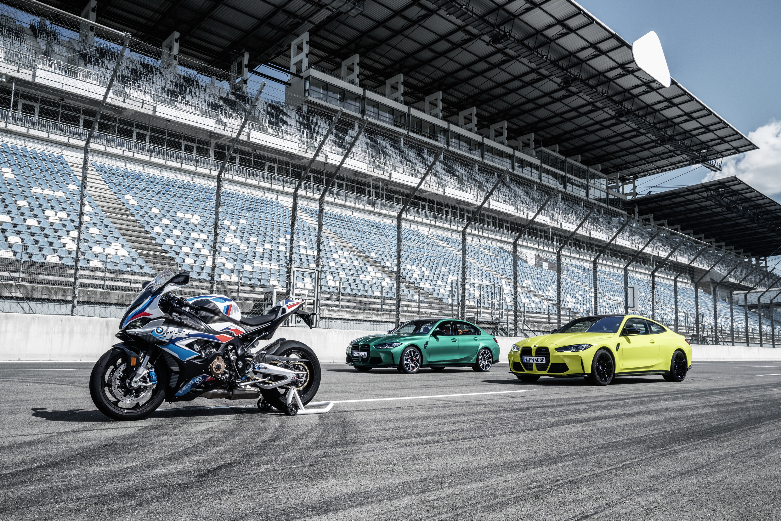 The new BMW M3 Competition Sedan, the new BMW M4 Competition Coupé and the new BMW 1000 RR (09/2020).