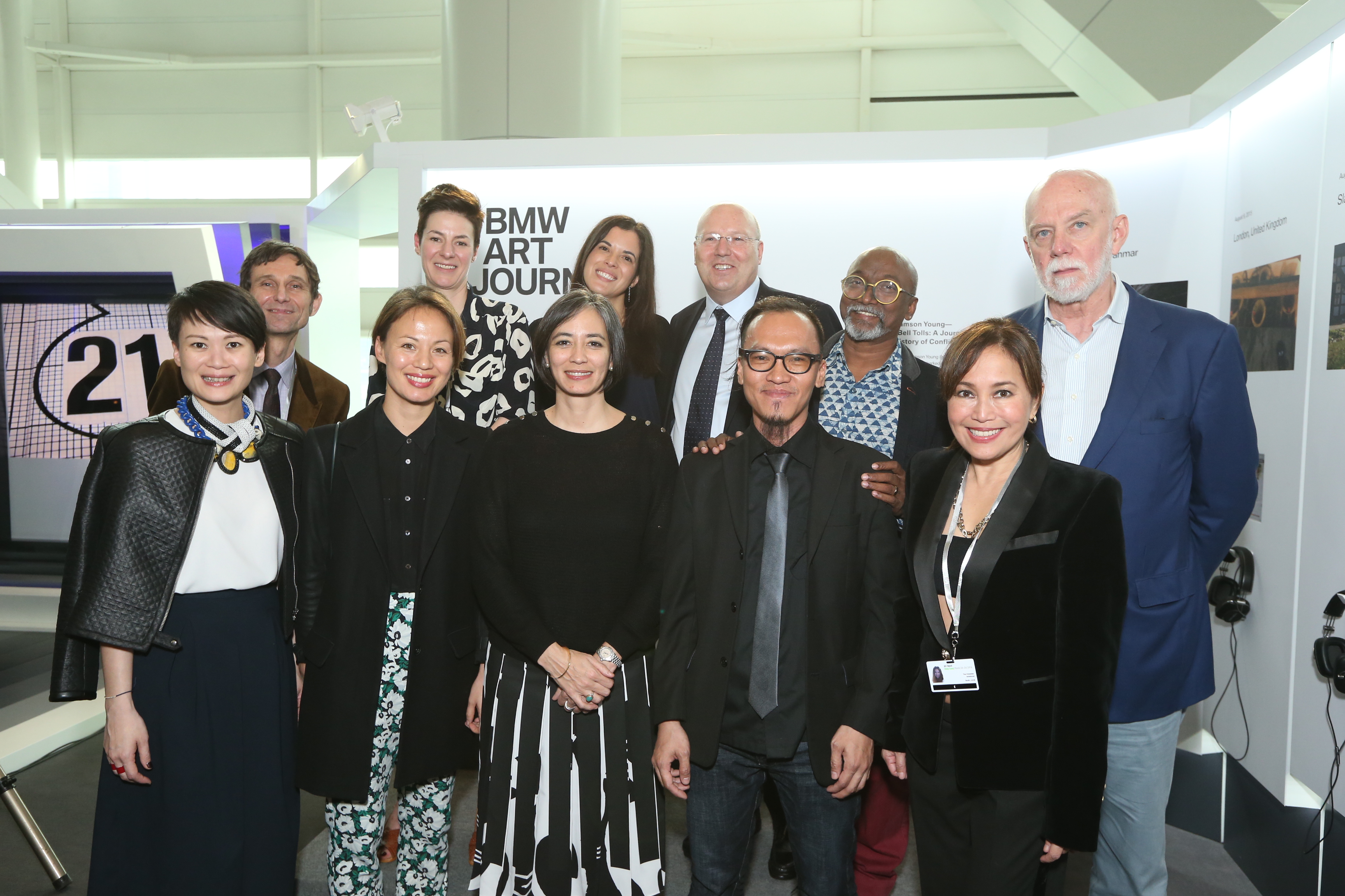 f.l.t.r.: Adeline Ooi (Director Asia, Art Basel) Thomas Erben (Gallery owner, Thomas Erben Gallery, New York) Claire Hsu (Director Asia Art Archive, Hong Kong) Pauline J. Yao (Curator Visual Art M+, Hong Kong) Beth Greenarce (Director, Rokeby, London) Hedwig Solis Weinstein (Head of BMW Brand Cooperations Arts & Design) Kevin Coon (Vice President BMW Group Importer Office Hong Kong, Macau and Taiwan) Alvin Zafra (artist) Bose Krishnamachari (President Kochi-Muziris Biennale, India) Tina Fernandez (Gallery owner, Artinformal, Mandaluyong City) Richard Armstrong (Director Solomon R. Guggenheim Museum, New York) (03/2016)