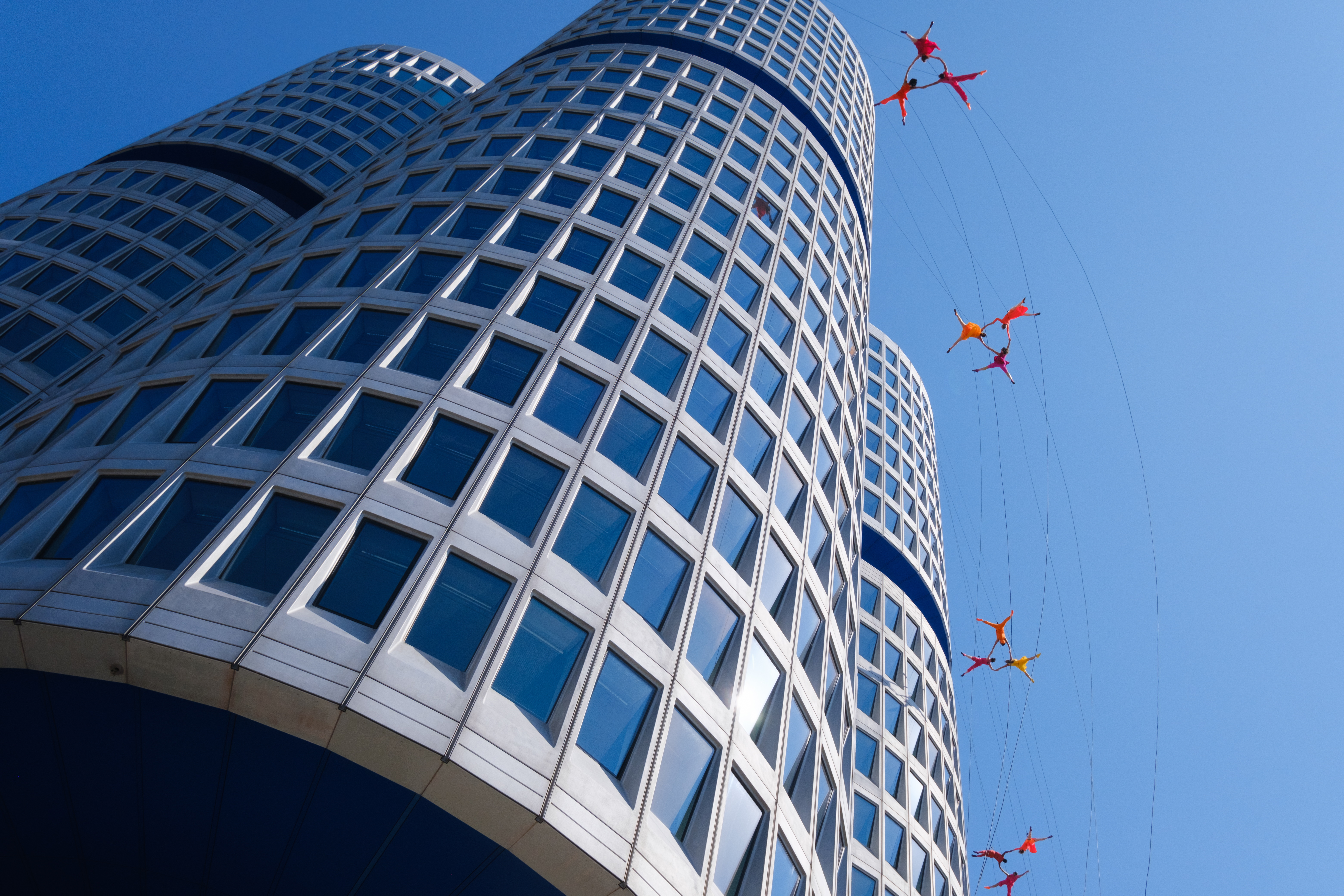 “Momentum Curve” by US dance company BANDALOOP at BMW Headquarters. Photo: Basil Tsimoyianis. © BMW AG and BANDALOOP