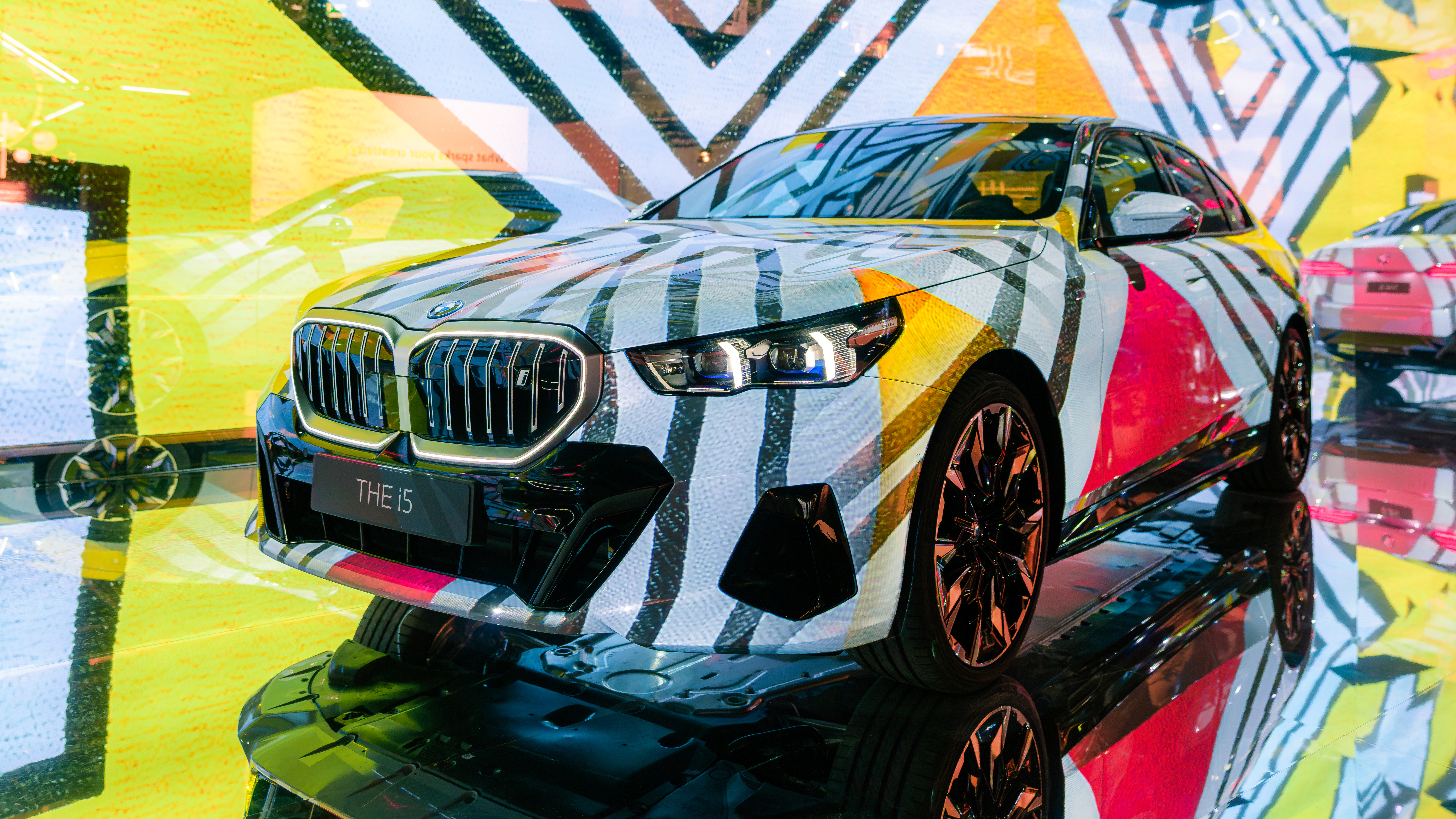 The Electric AI Canvas at Art Basel in Basel 2023. An installation inspired by the new BMW i5. Featuring Esther Mahlangu, 2023. (06/2023)