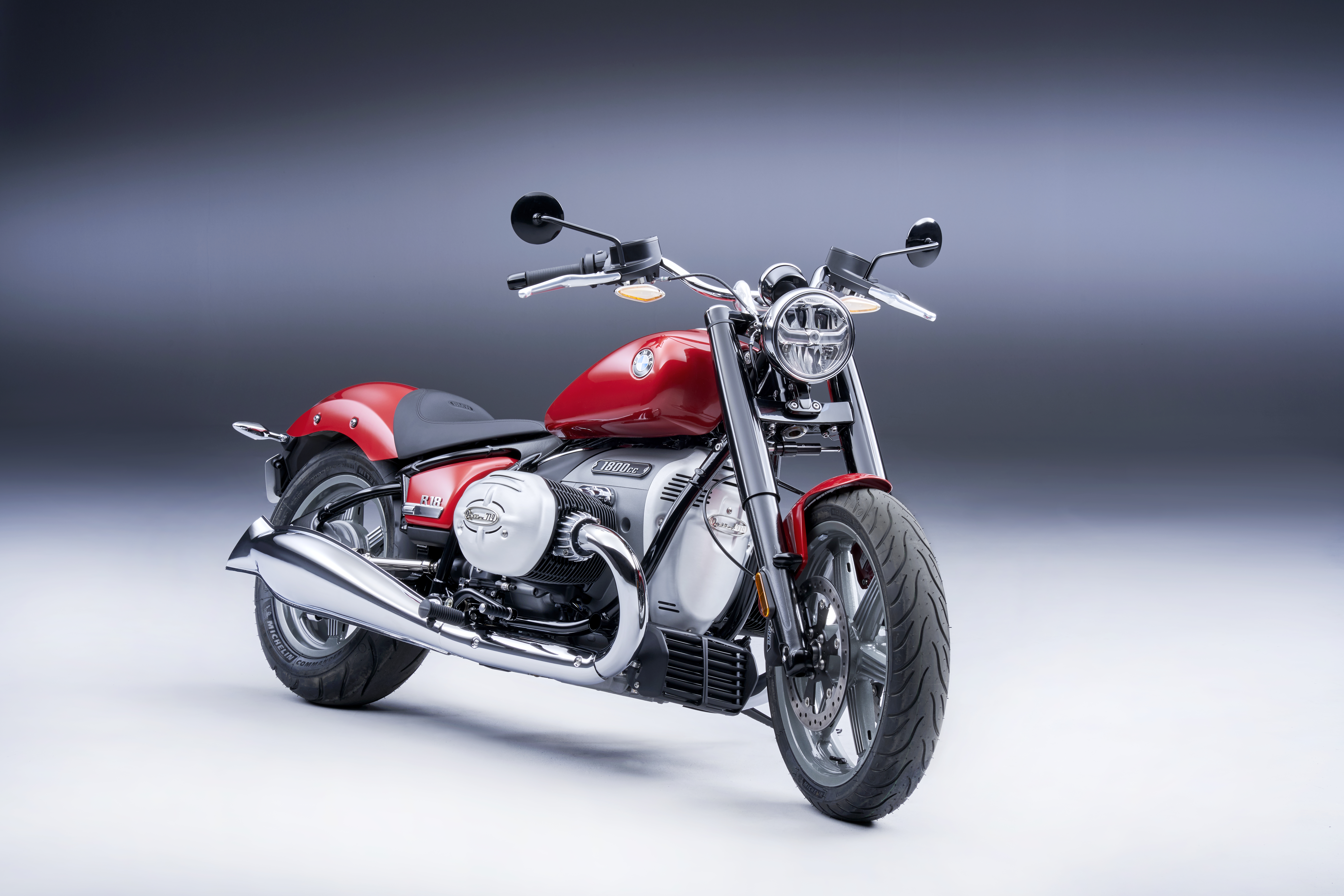 BMW R 18 Classic in Manhattan metallic matt, R 18 in Mars Red metallic and R 18 with Option 719 Paint finish Galaxy Dust metallic/Titanium Silver 2 metallic. (07/2021)