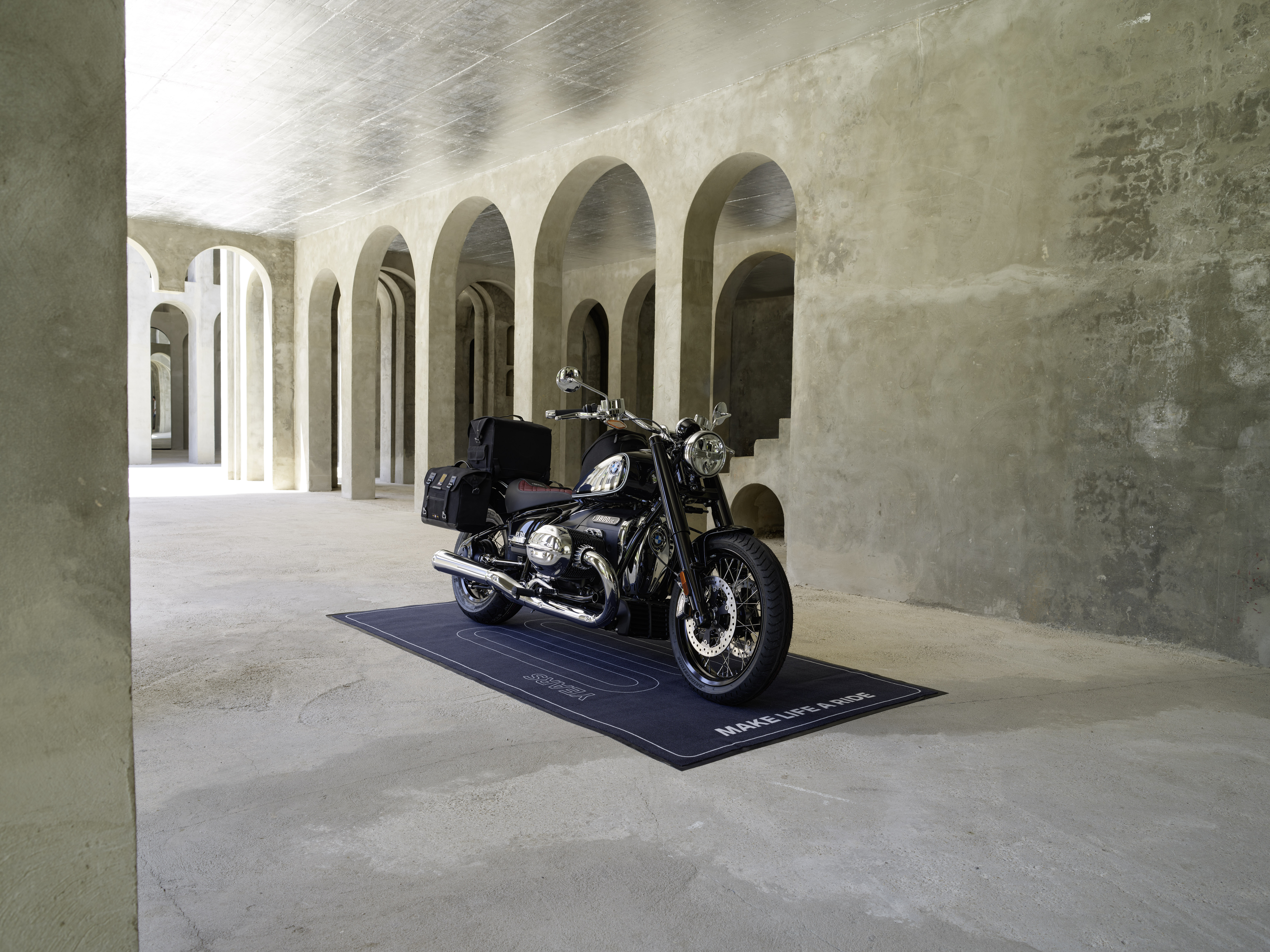 BMW R 18 100 Years. Original BMW Motorrad Accessories: Tank bag Edition 100 Years, Side bag Edition 100 Years, left, Side bag Edition 100 Years, right, Rear bag Edition 100 Years and Motorcycle mat Edition 100 Years. (12/2022)
