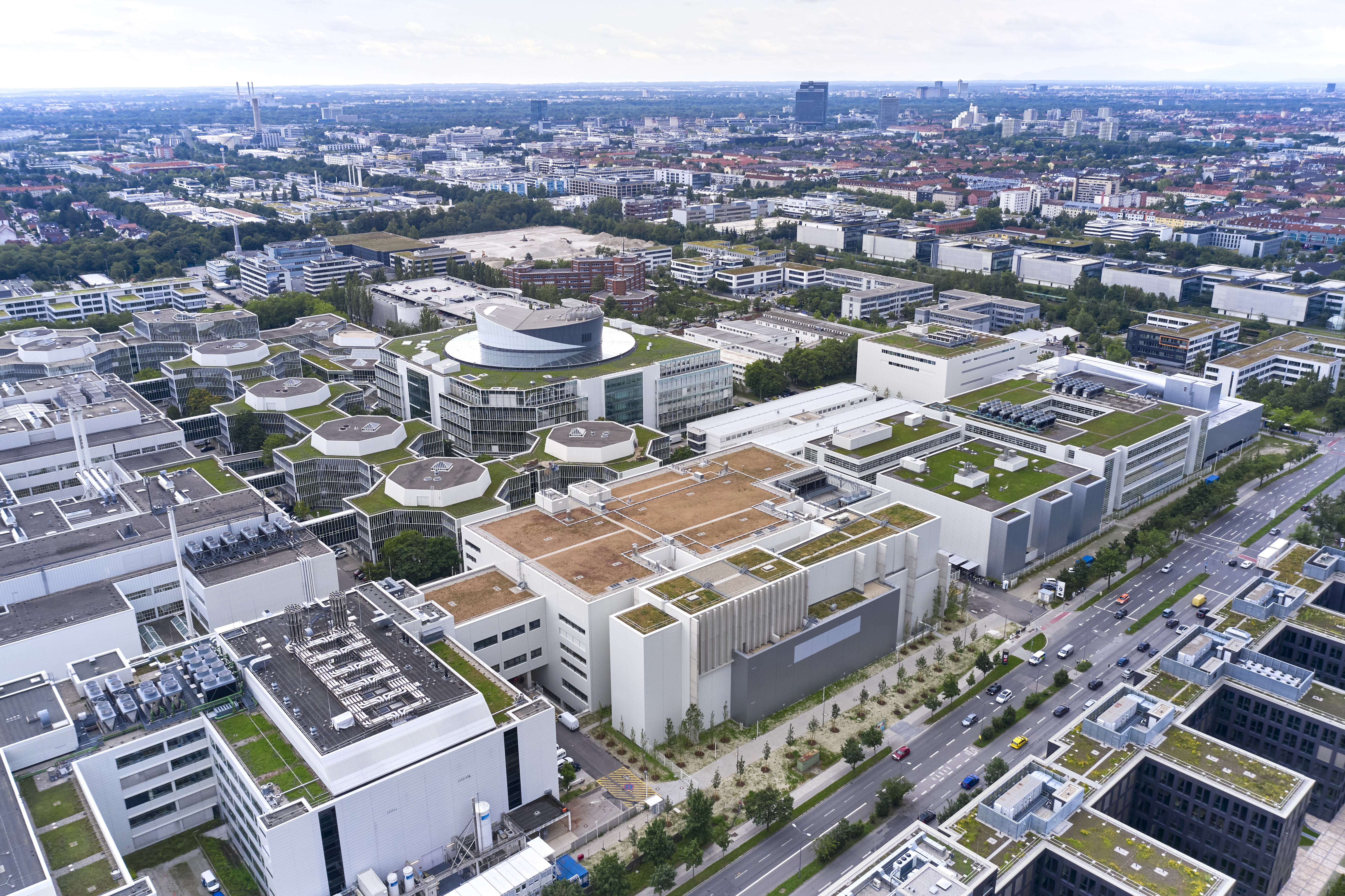 Aerial view of the high-voltage battery assembly plant in Irlbach-Straßkirchen, with the Energy Center and the Fire Station in the foreground. ...