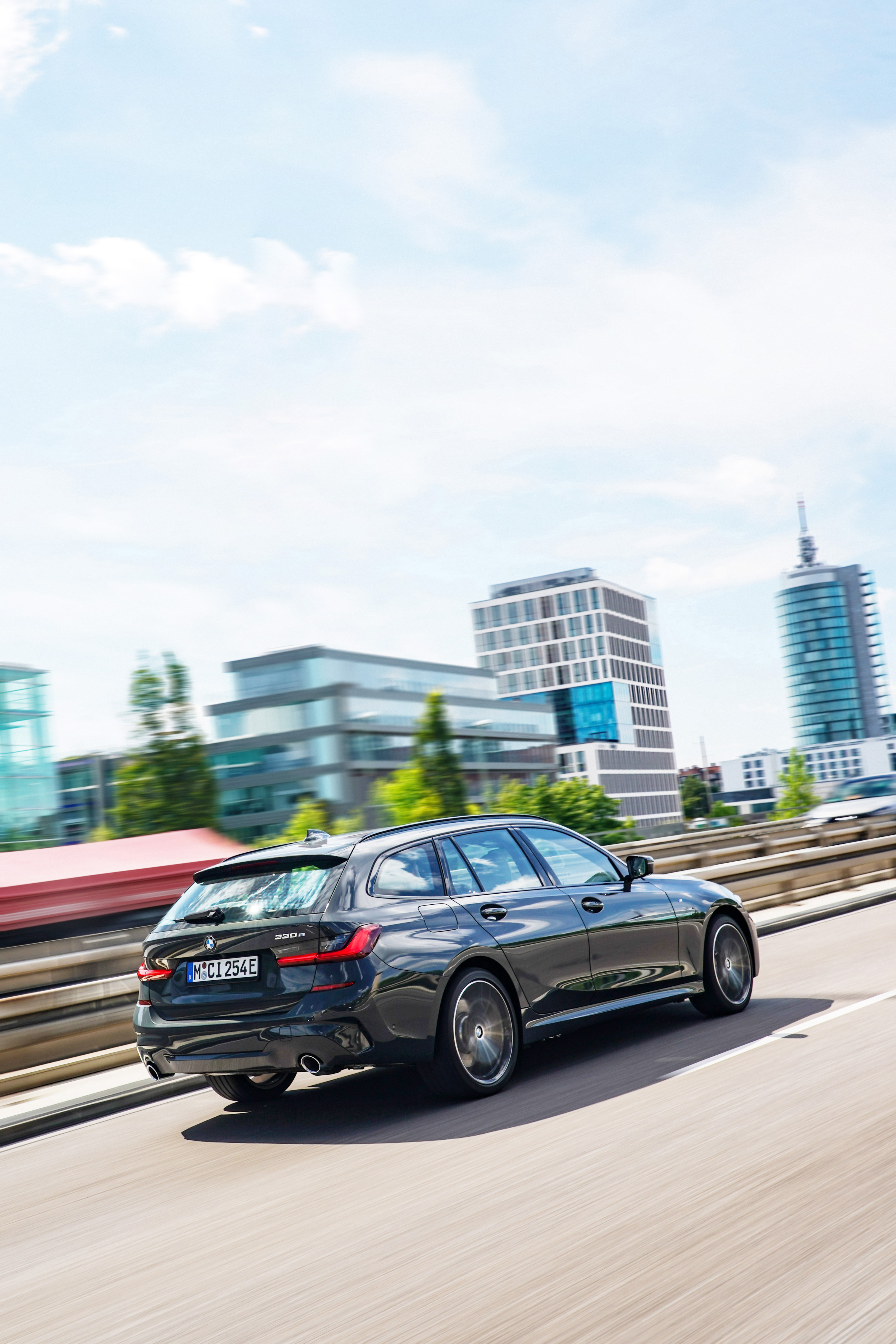 BMW 320e Touring: Fuel consumption weighted, combined: 1.9 - 1.4 l/100 km (WLTP), 1.9 - 1.7 l/100 km (NEDC); power consumption weighted, combined: 18.6 - 16.7 kWh/100 km (WLTP), 15.3 - 14.3 kWh/100 km (NEDC), CO2 emissions weighted, combined: 44 - 32 g/km (WLTP), 44 - 38 g/km (NEDC).