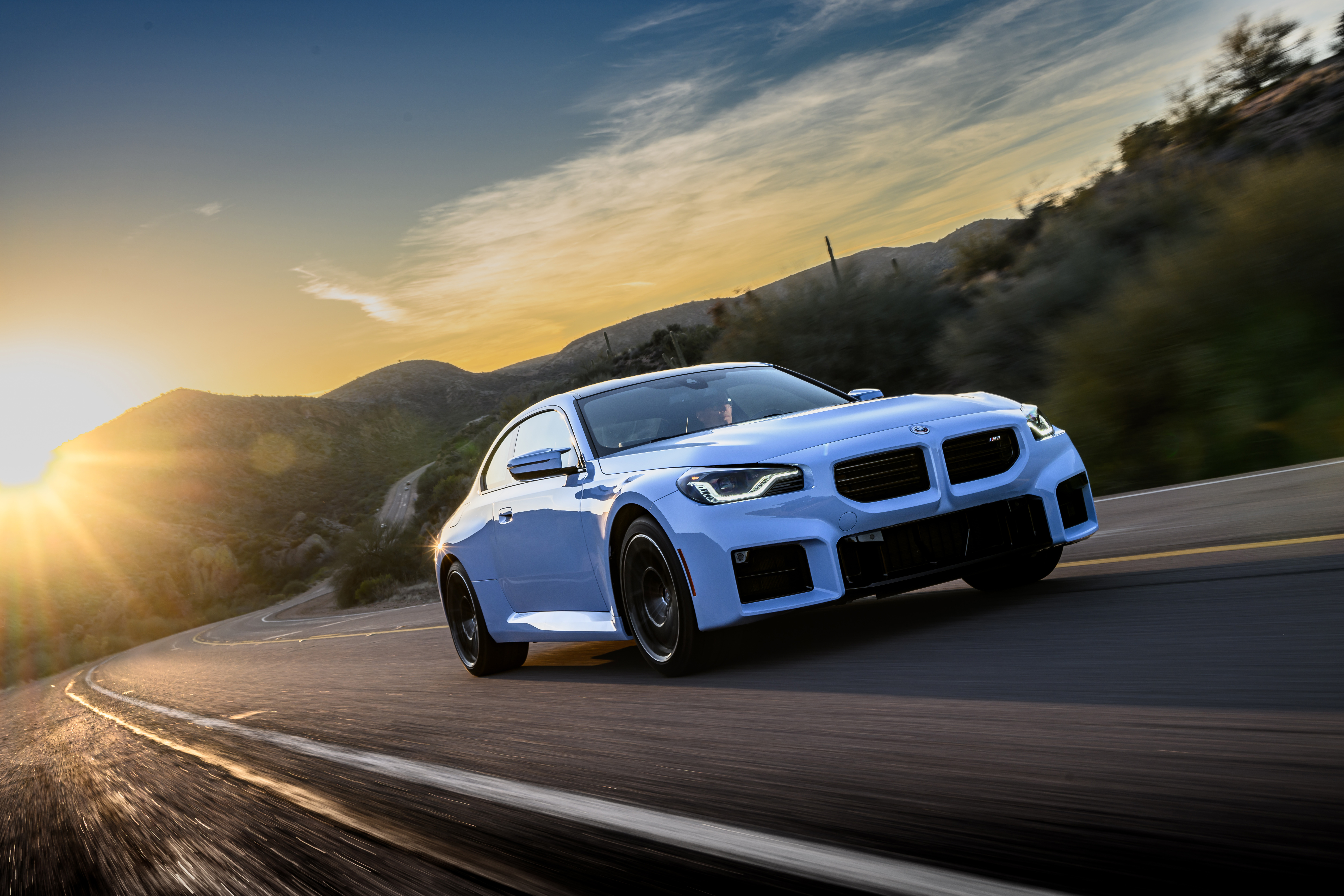 The all-new BMW M2 Zandvoort Blue - On Location, driving.