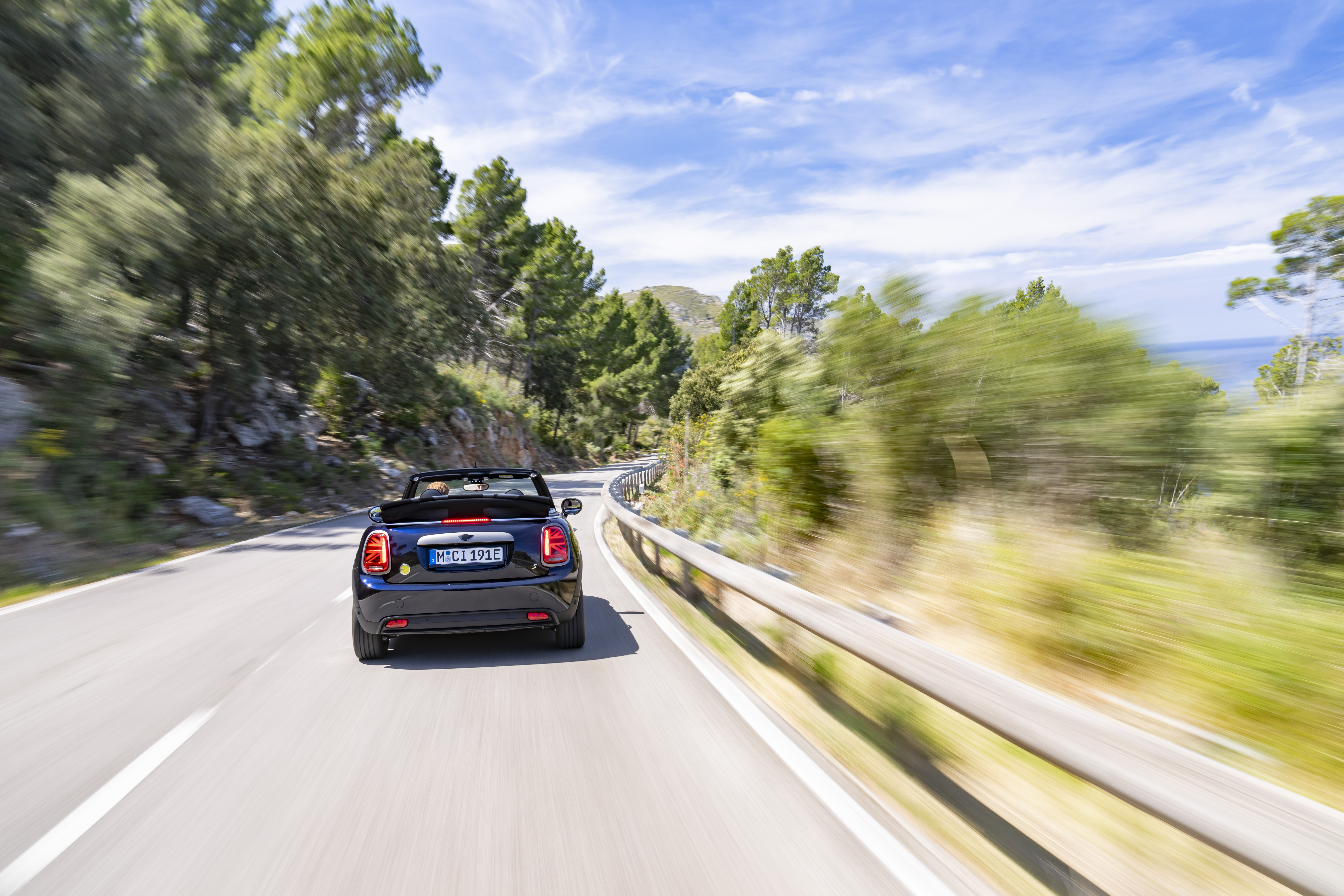 MINI Cooper SE Convertible (combined power consumption: 17.2 (WLTP) kWh/100 km; combined CO2 emissions: 0 g/km).