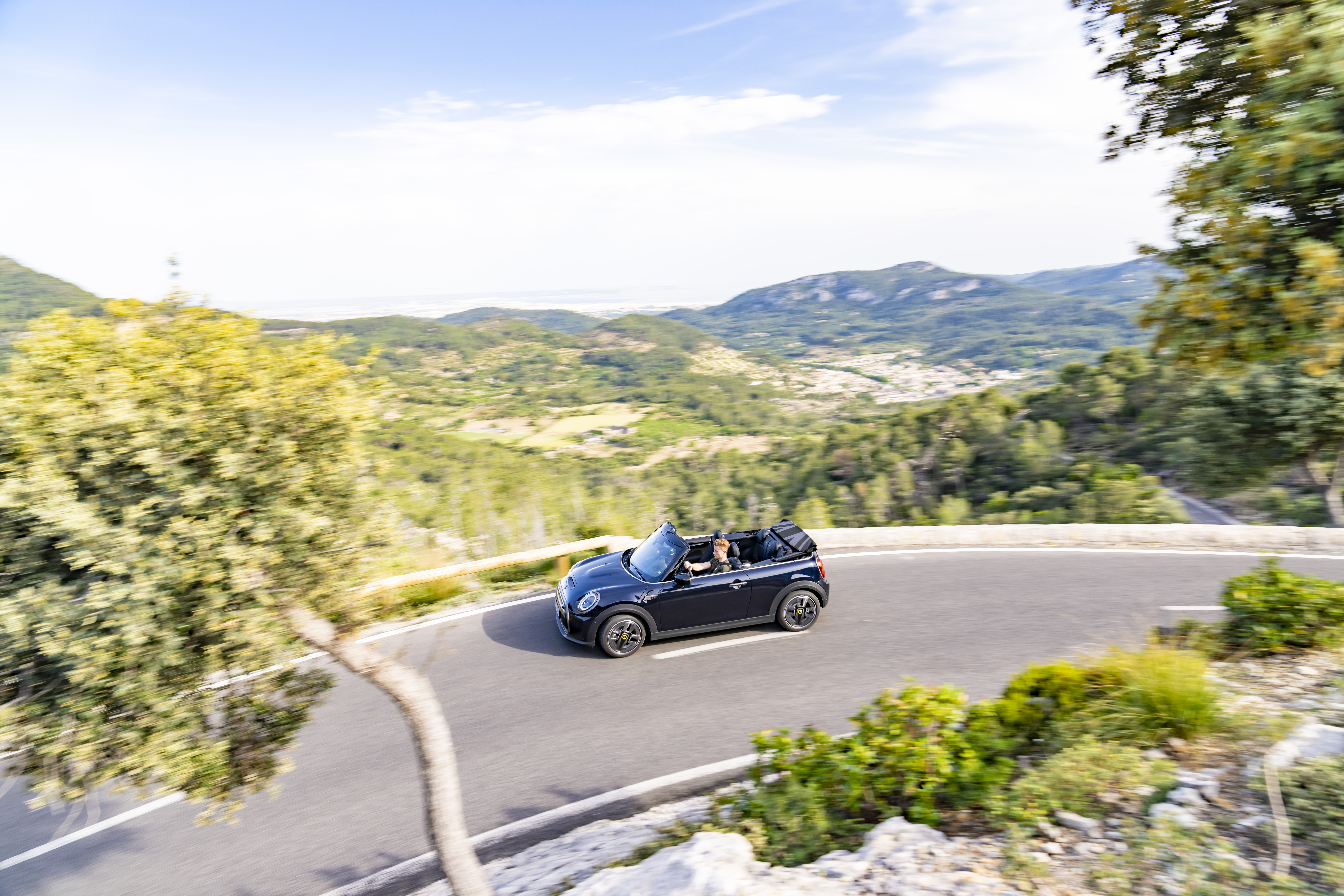 MINI Cooper SE Convertible (combined power consumption: 17.2 (WLTP) kWh/100 km; combined CO2 emissions: 0 g/km).
