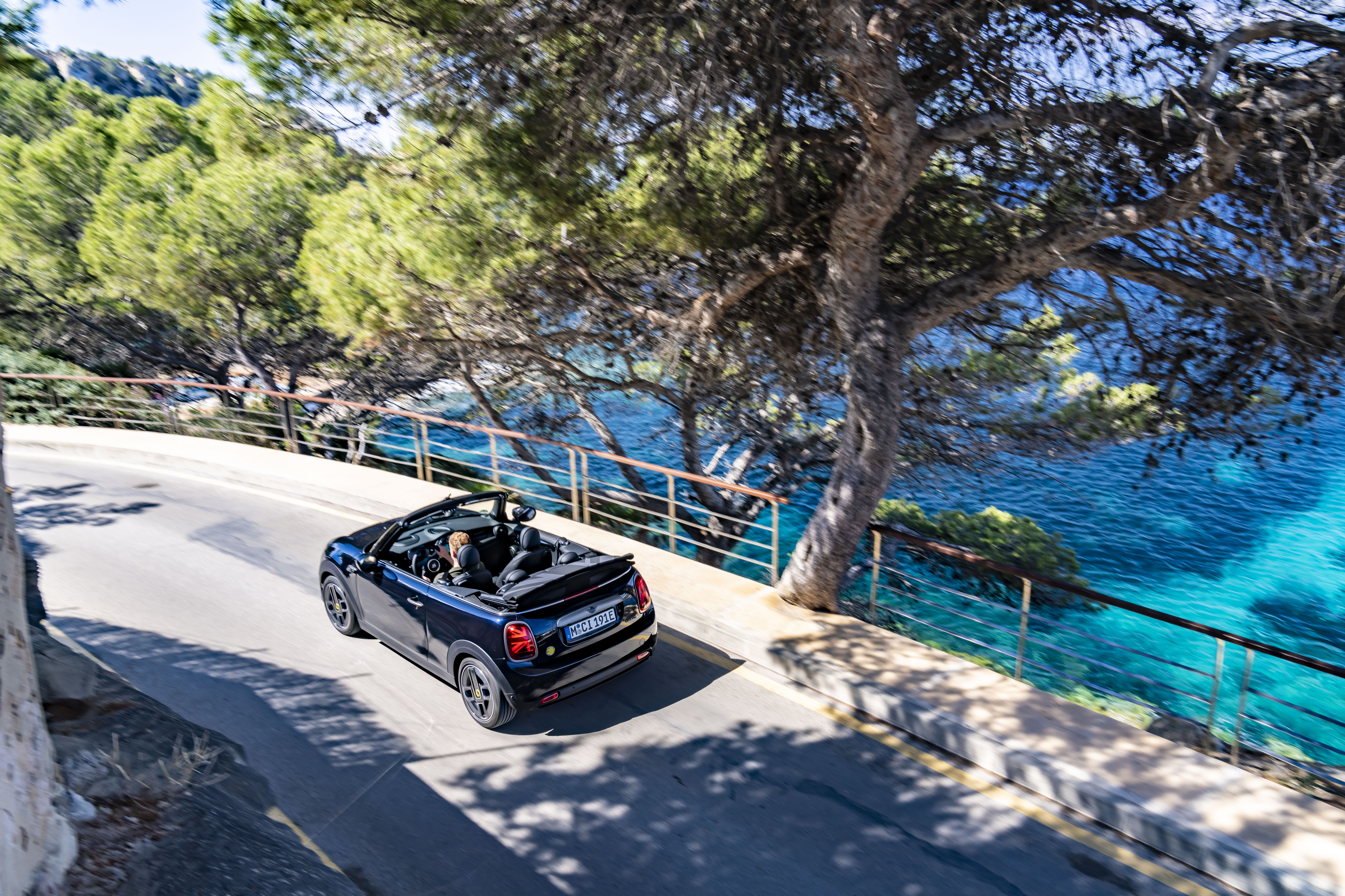 MINI Cooper SE Convertible (combined power consumption: 17.2 (WLTP) kWh/100 km; combined CO2 emissions: 0 g/km).