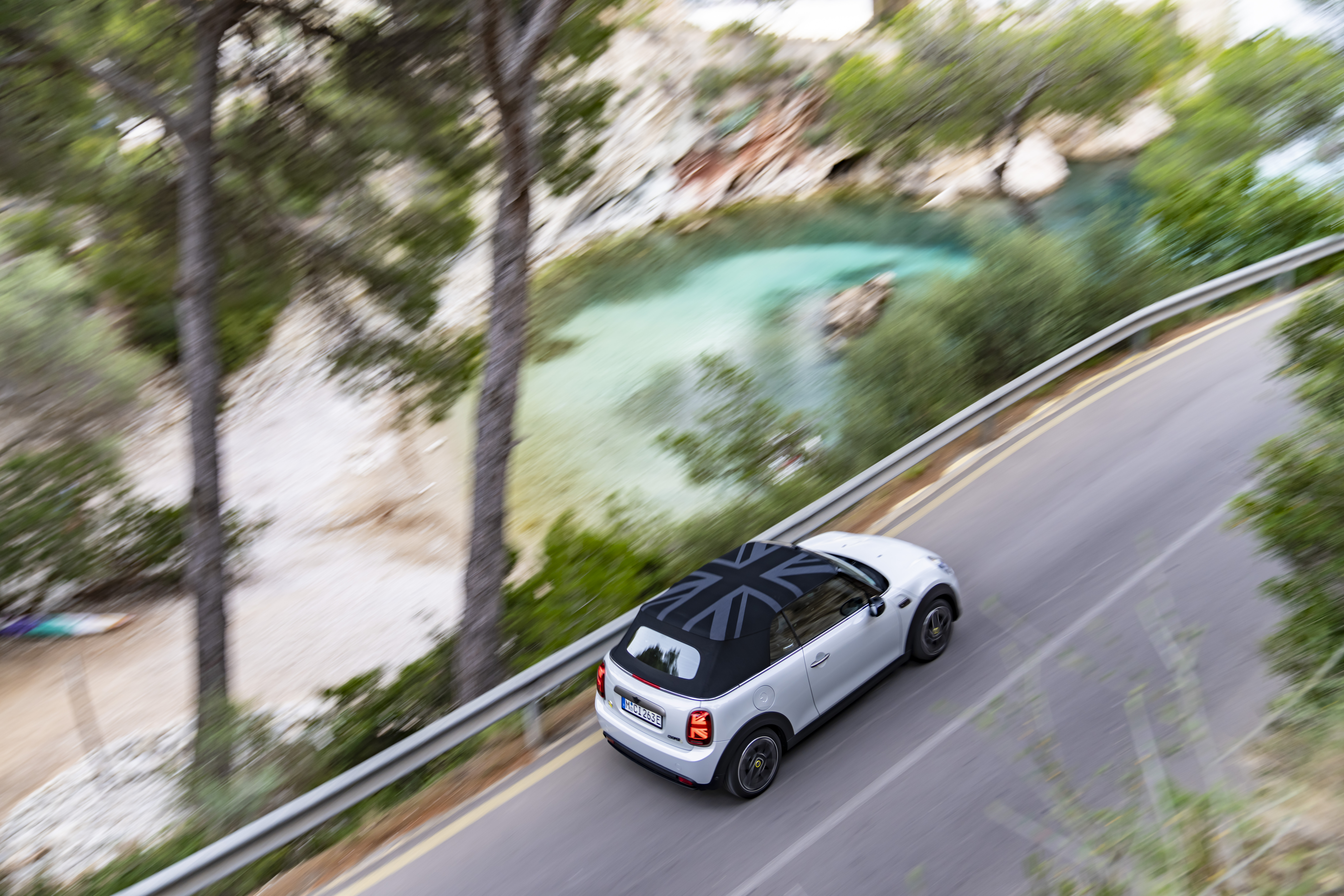 MINI Cooper SE Convertible (combined power consumption: 17.2 (WLTP) kWh/100 km; combined CO2 emissions: 0 g/km).