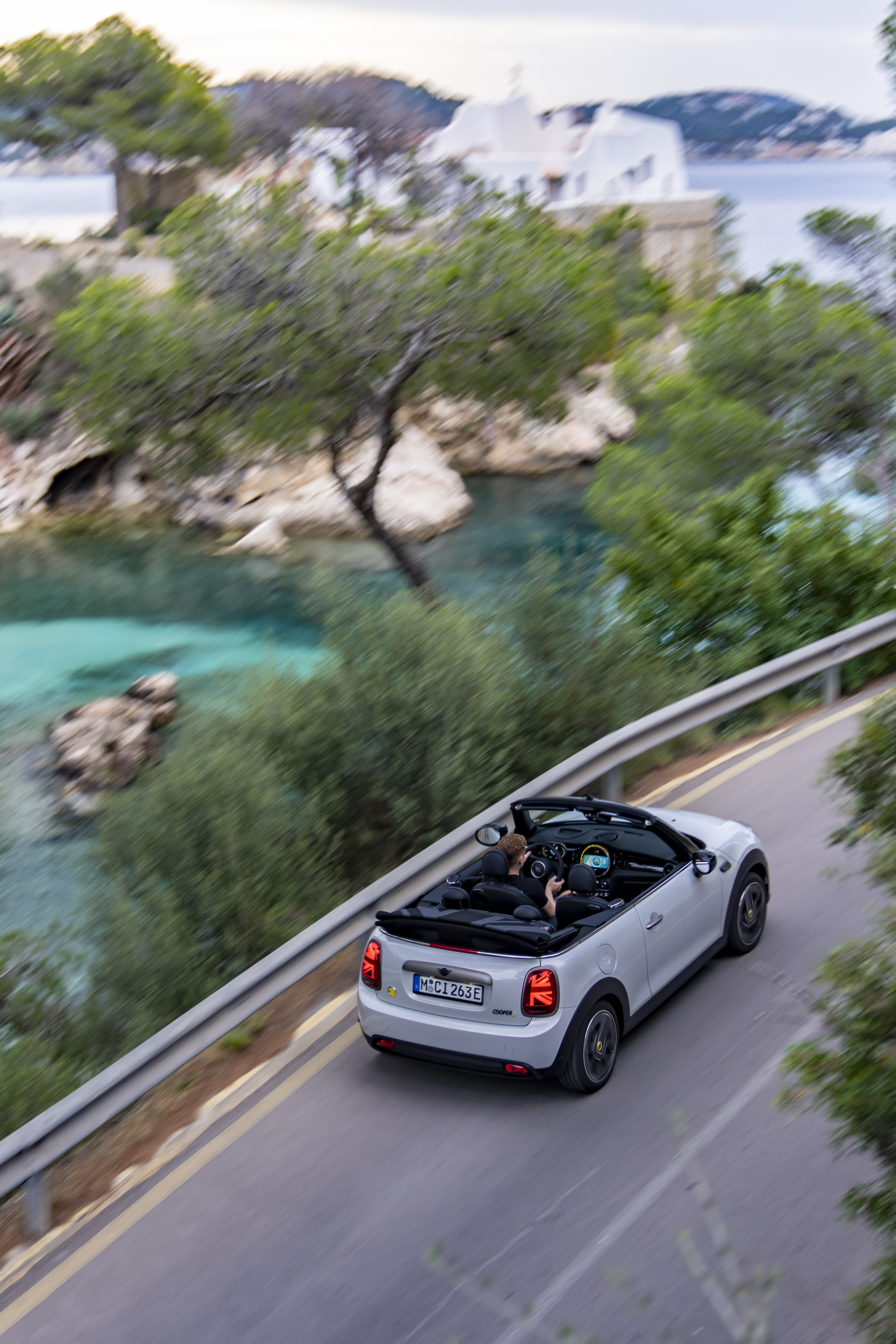 MINI Cooper SE Convertible (combined power consumption: 17.2 (WLTP) kWh/100 km; combined CO2 emissions: 0 g/km).