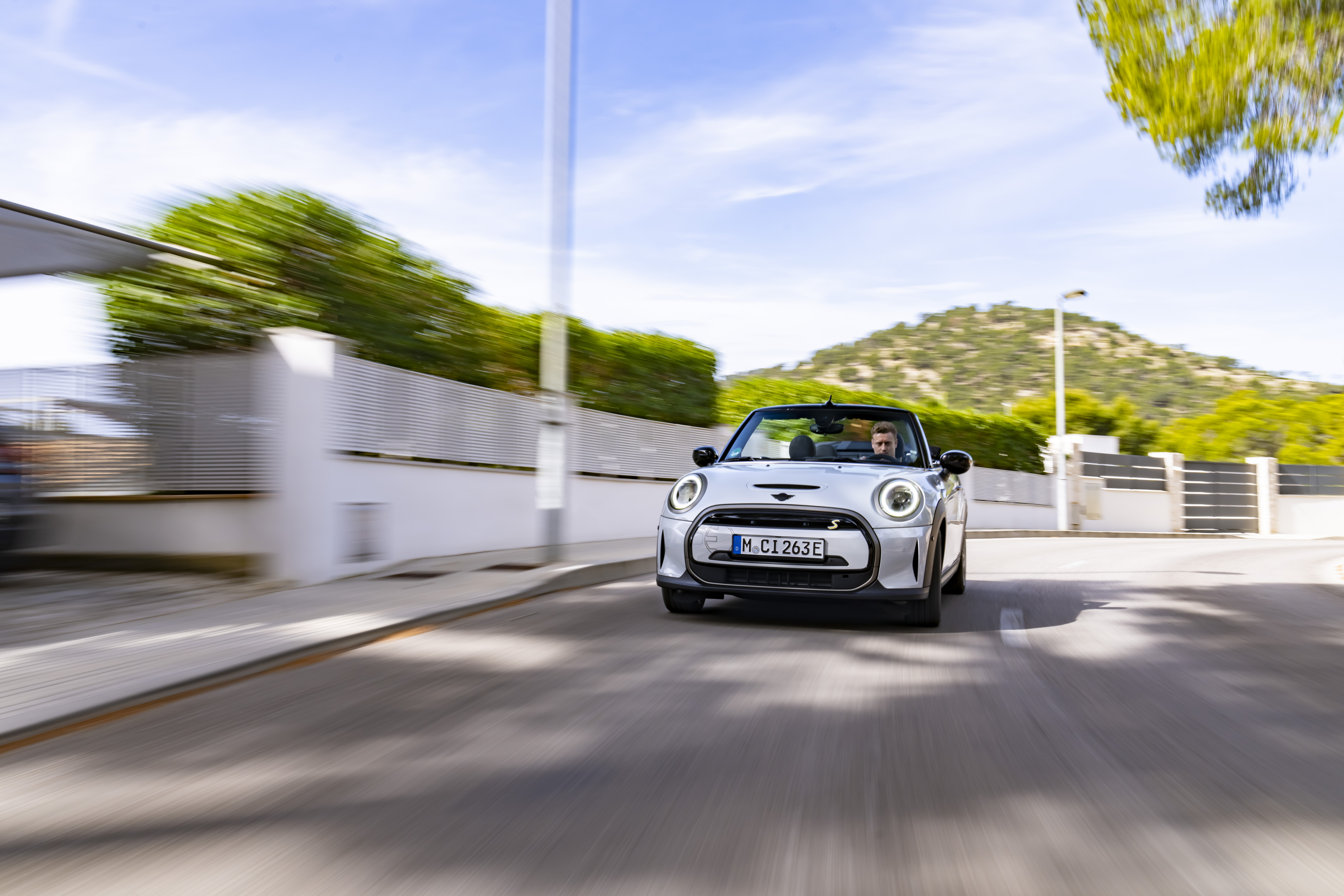 MINI Cooper SE Convertible (combined power consumption: 17.2 (WLTP) kWh/100 km; combined CO2 emissions: 0 g/km).