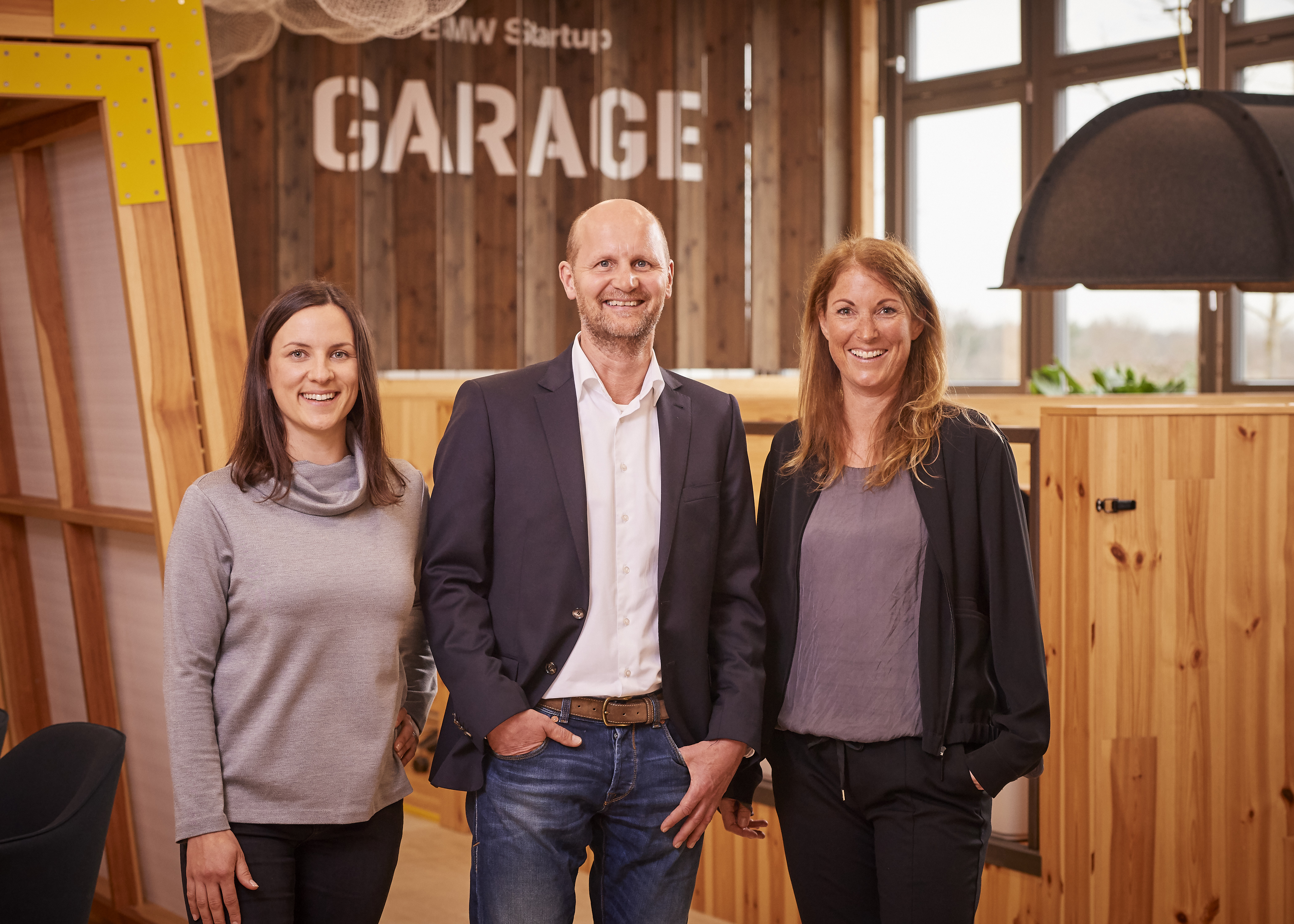 Core team of the BMW Startup Garage: from the left: Alexandra Renner (Startup-Lead Research and Development), Bernhard Schambeck (Head of BMW Startup Garage), Melanie Rösler (Lead, Startup Programs) (03/2019)