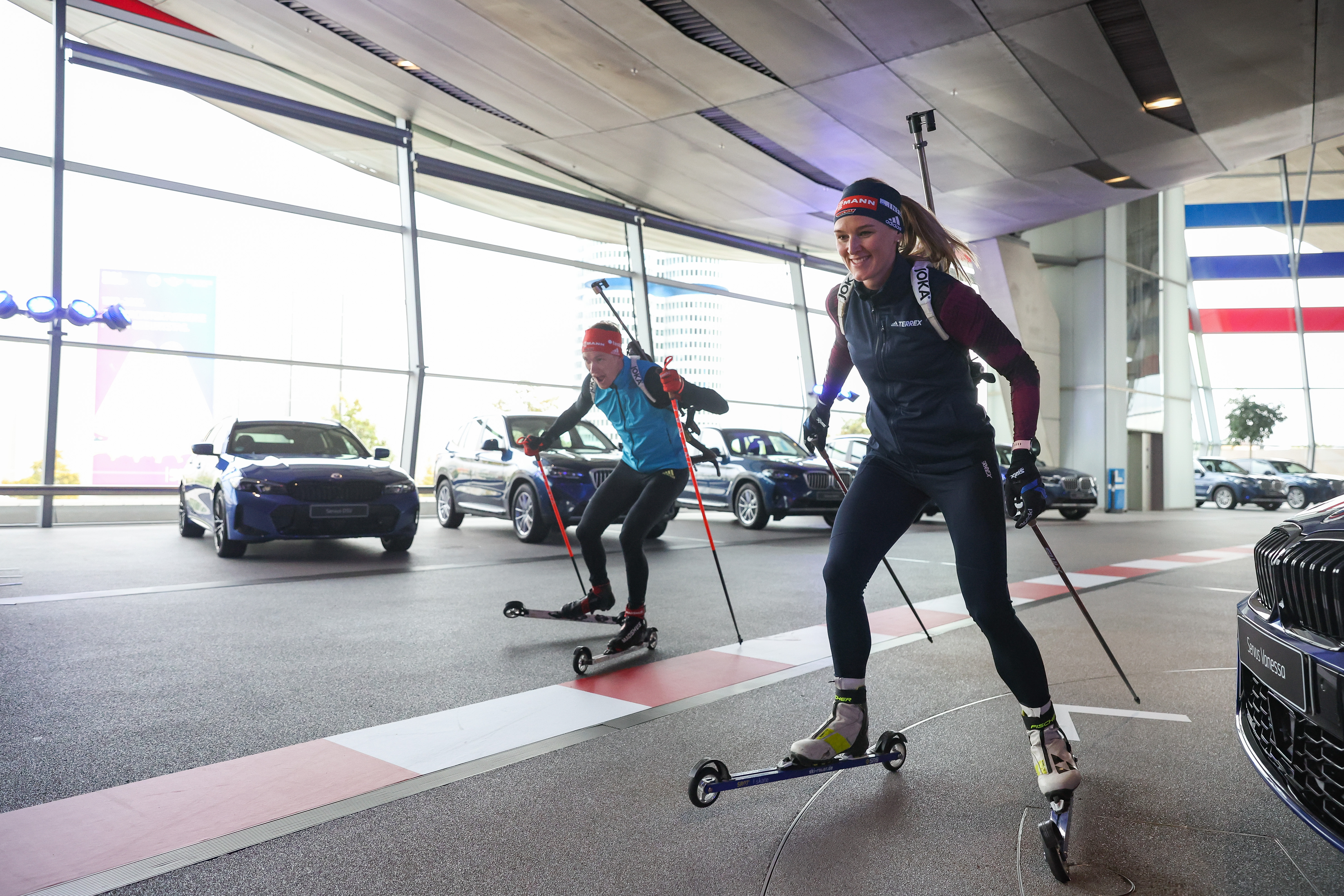 Benedikt Doll, Denise Herrmann-Wick - BMW Group, Official Car Partner German National Biathlon Team. BMW Welt (Munich).