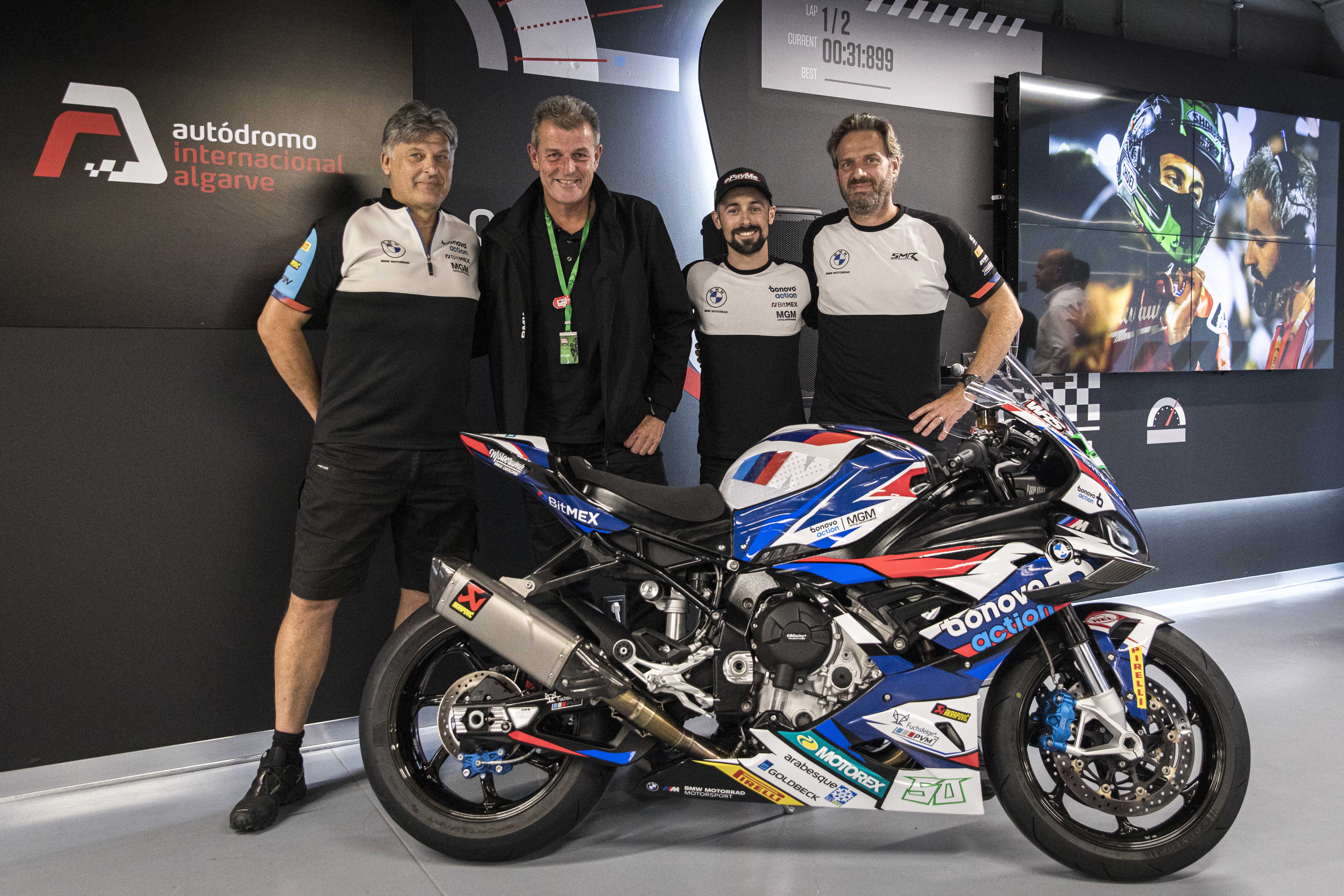 08th October 2022. Portimao (POR). FIM Superbike World Championship. BMW Motorrad WorldSBK Team, BMW S 1000 RR, Eugene Laverty #50 (IRL), with Marc Bongers, BMW Motorrad Motorsport Director, Dr. Markus Schramm, Head of BMW Motorrad and Michael Galinski, Team Manager Bonovo action BMW Racing Team