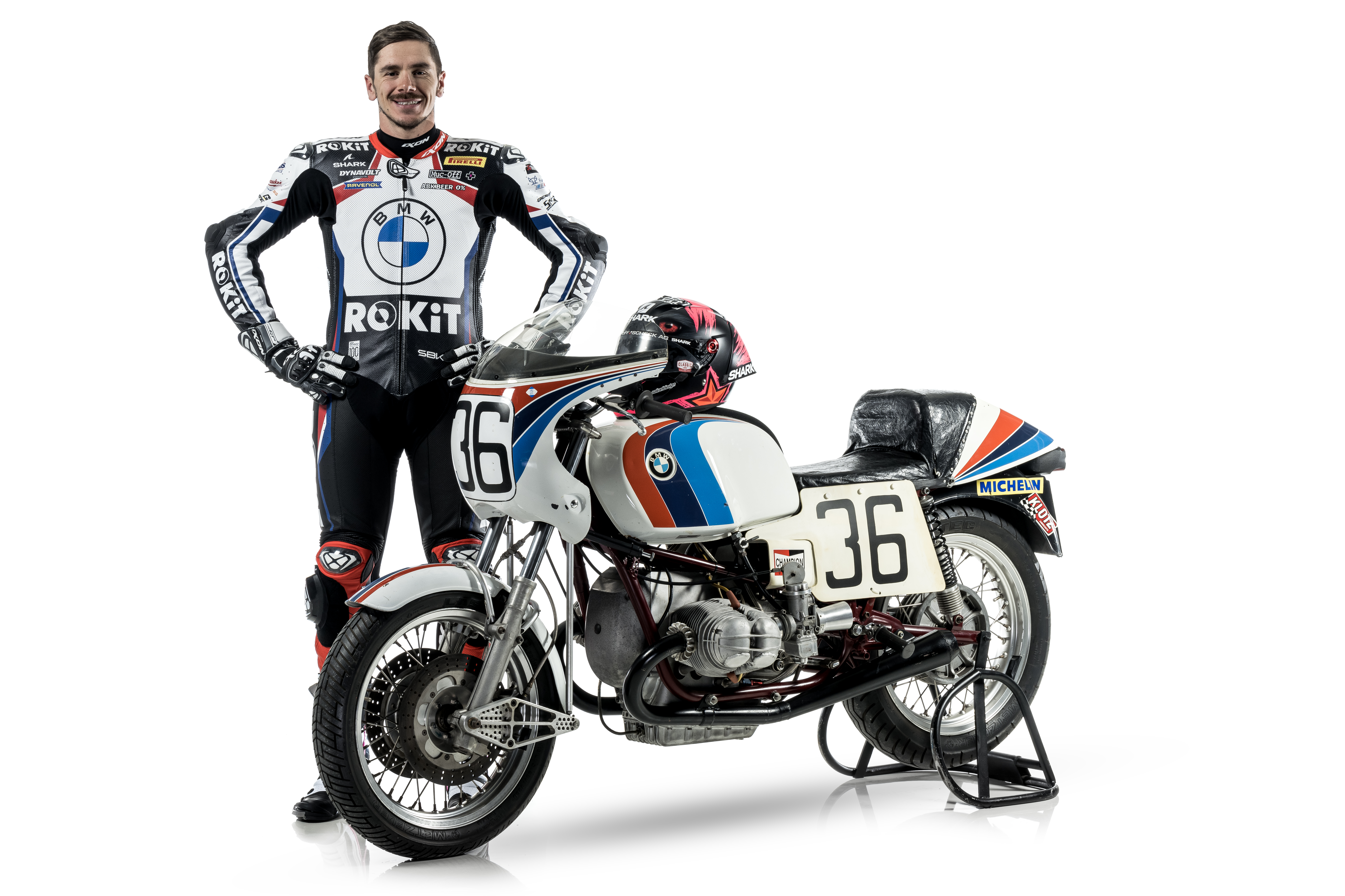 Munich (GER), 17th February 2023. BMW Motorrad Motorsport, 2023 FIM Superbike World Championship, 100 Years of BMW Motorrad, Scott Redding (GBR), ROKiT BMW Motorrad WorldSBK Team, Historic bike: BMW R 90 S (1978).