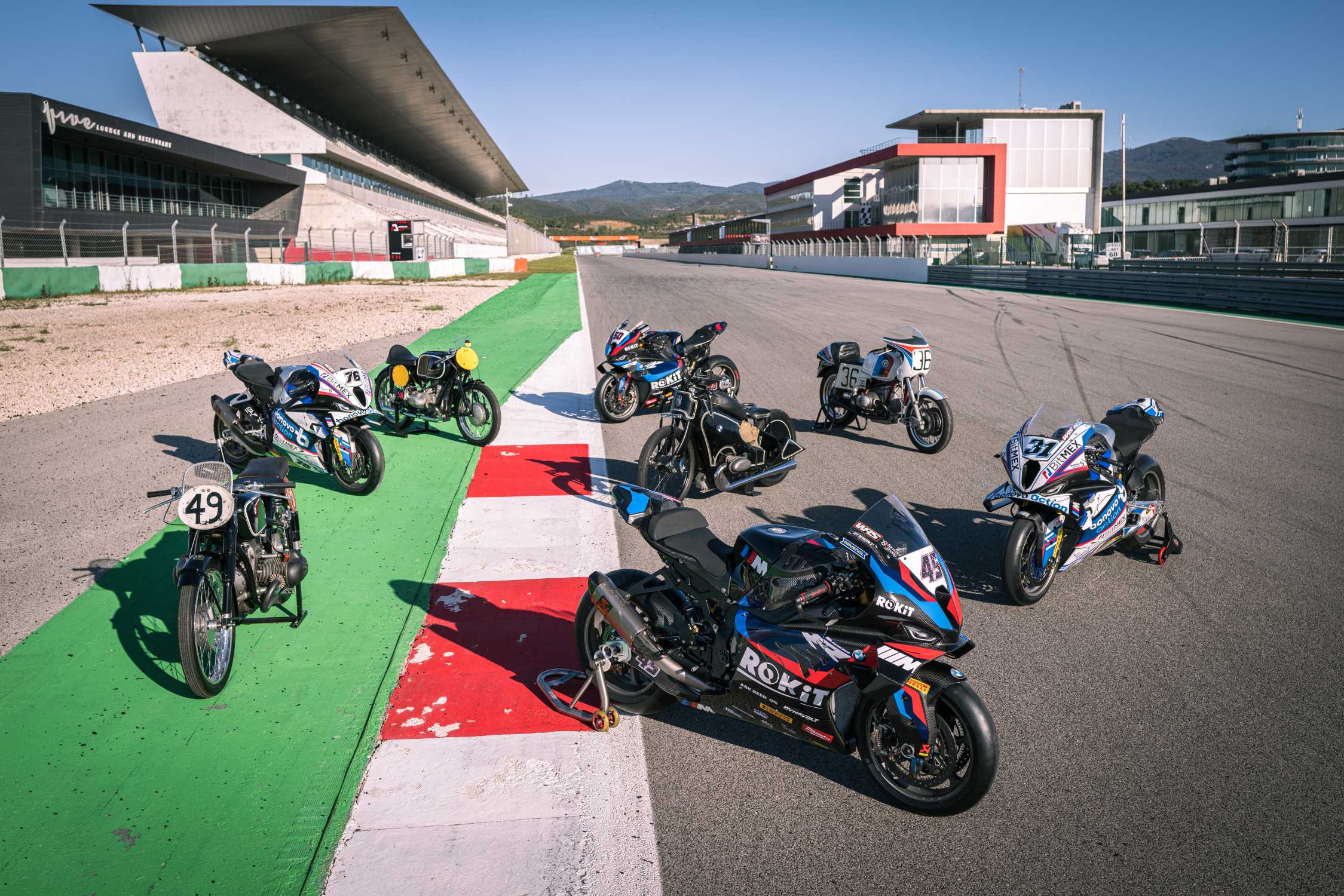 Munich (GER), 17th February 2023. BMW Motorrad Motorsport, 2023 FIM Superbike World Championship, 100 Years of BMW Motorrad, ROKiT BMW Motorrad WorldSBK Team, #45 BMW M 1000 RR, Scott Redding (GBR), #60 BMW M 1000 RR, Michael van der Mark (NED), Bonovo action BMW Racing Team, #31 BMW M 1000 RR, Garrett Gerloff (USA), #76 BMW M 1000 RR, Loris Baz (FRA). Historic bikes: BMW R 37 750 cc (1935), BMW R 255 Kompressor (1939), BMW RS 54 (1954), BMW R 90 S (1978).