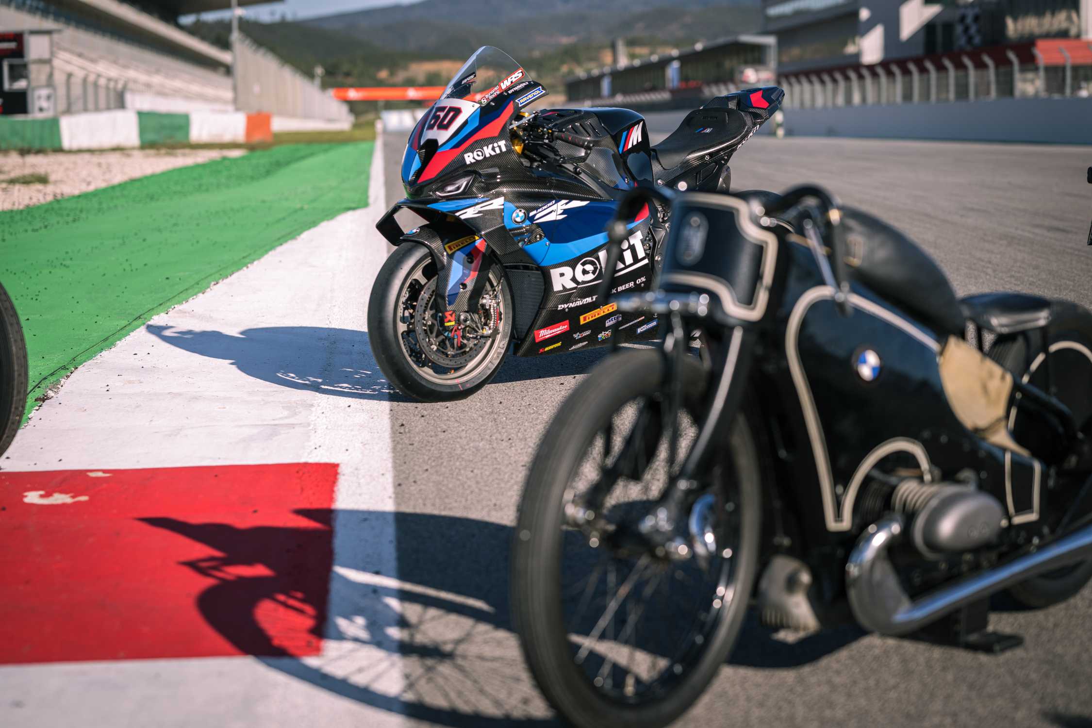 Munich (GER), 17th February 2023. BMW Motorrad Motorsport, 2023 FIM Superbike World Championship, 100 Years of BMW Motorrad, ROKiT BMW Motorrad WorldSBK Team, #60 BMW M 1000 RR, Michael van der Mark (NED), Historic bike: BMW R 37 750 cc (1935).