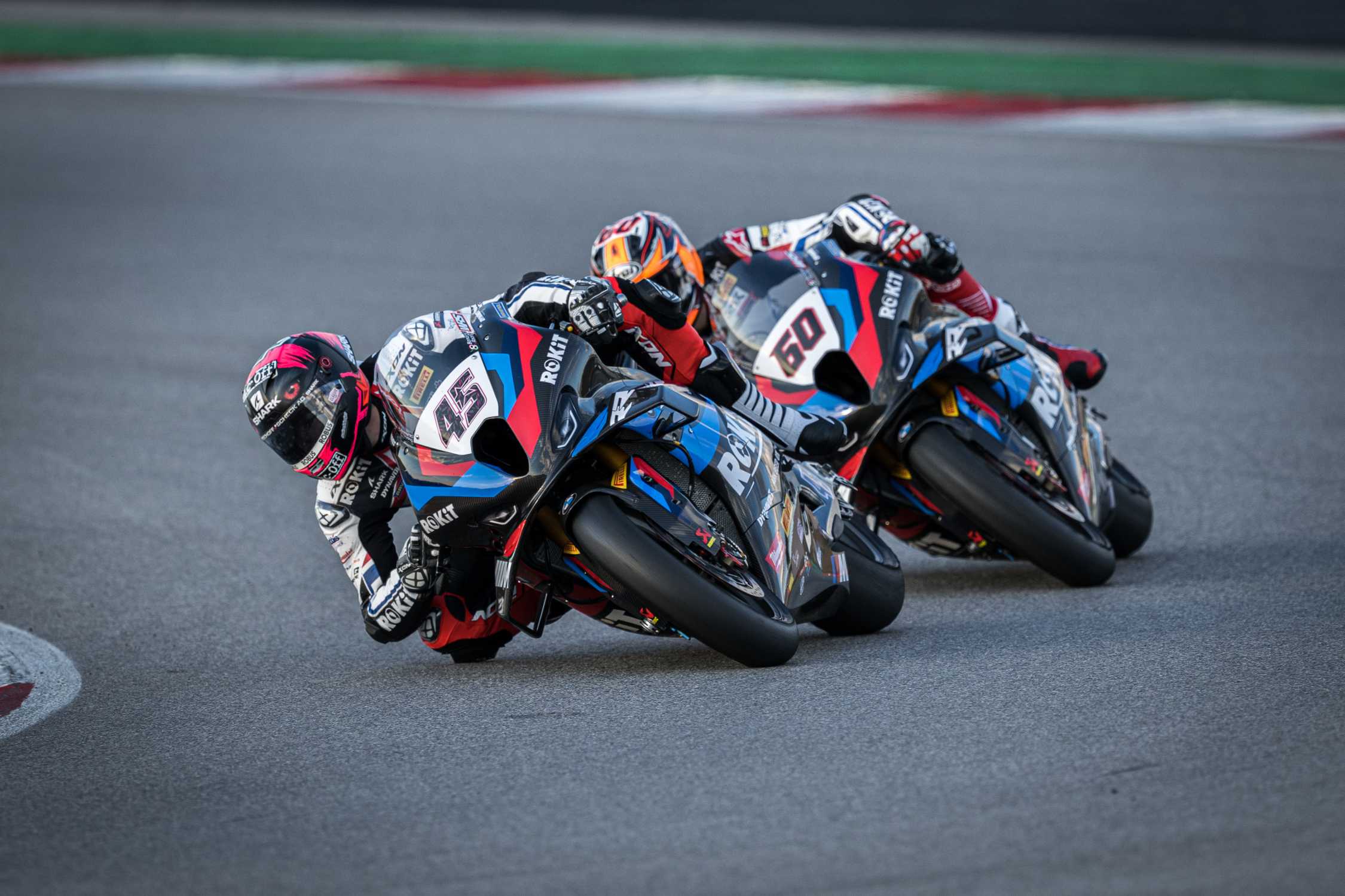 Munich (GER), 17th February 2023. BMW Motorrad Motorsport, 2023 FIM Superbike World Championship, 100 Years of BMW Motorrad, ROKiT BMW Motorrad WorldSBK Team, #45 BMW M 1000 RR, Scott Redding (GBR), #60 BMW M 1000 RR, Michael van der Mark (NED).