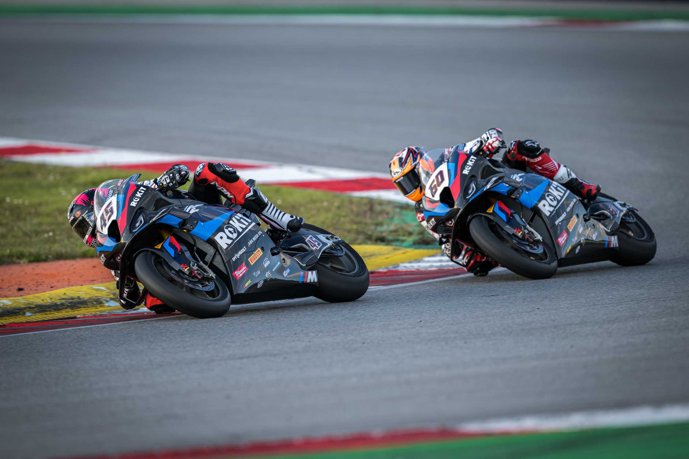 Munich (GER), 17th February 2023. BMW Motorrad Motorsport, 2023 FIM Superbike World Championship, 100 Years of BMW Motorrad, ROKiT BMW Motorrad WorldSBK Team, #45 BMW M 1000 RR, Scott Redding (GBR), #60 BMW M 1000 RR, Michael van der Mark (NED).