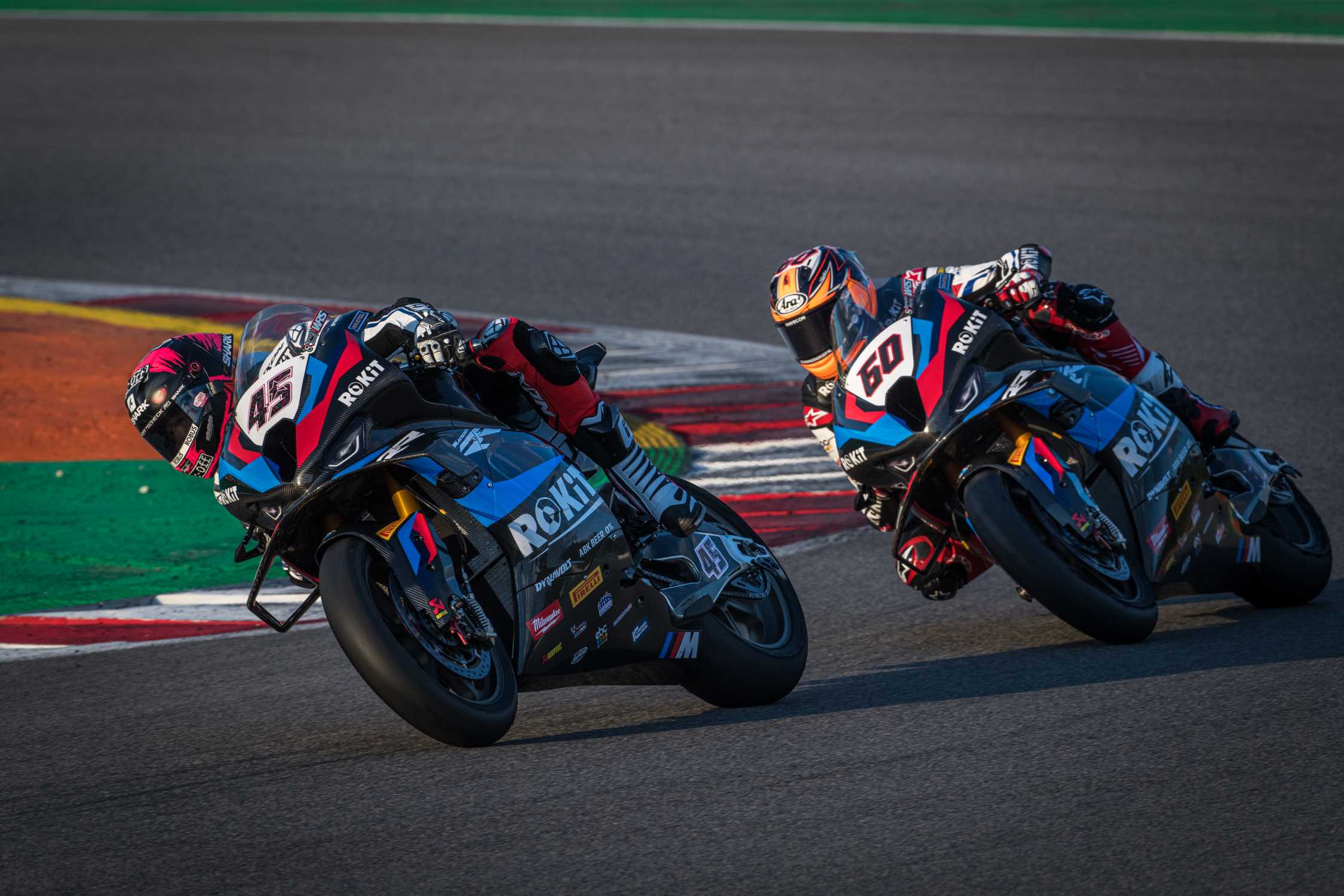 Munich (GER), 17th February 2023. BMW Motorrad Motorsport, 2023 FIM Superbike World Championship, 100 Years of BMW Motorrad, ROKiT BMW Motorrad WorldSBK Team, #45 BMW M 1000 RR, Scott Redding (GBR), #60 BMW M 1000 RR, Michael van der Mark (NED).