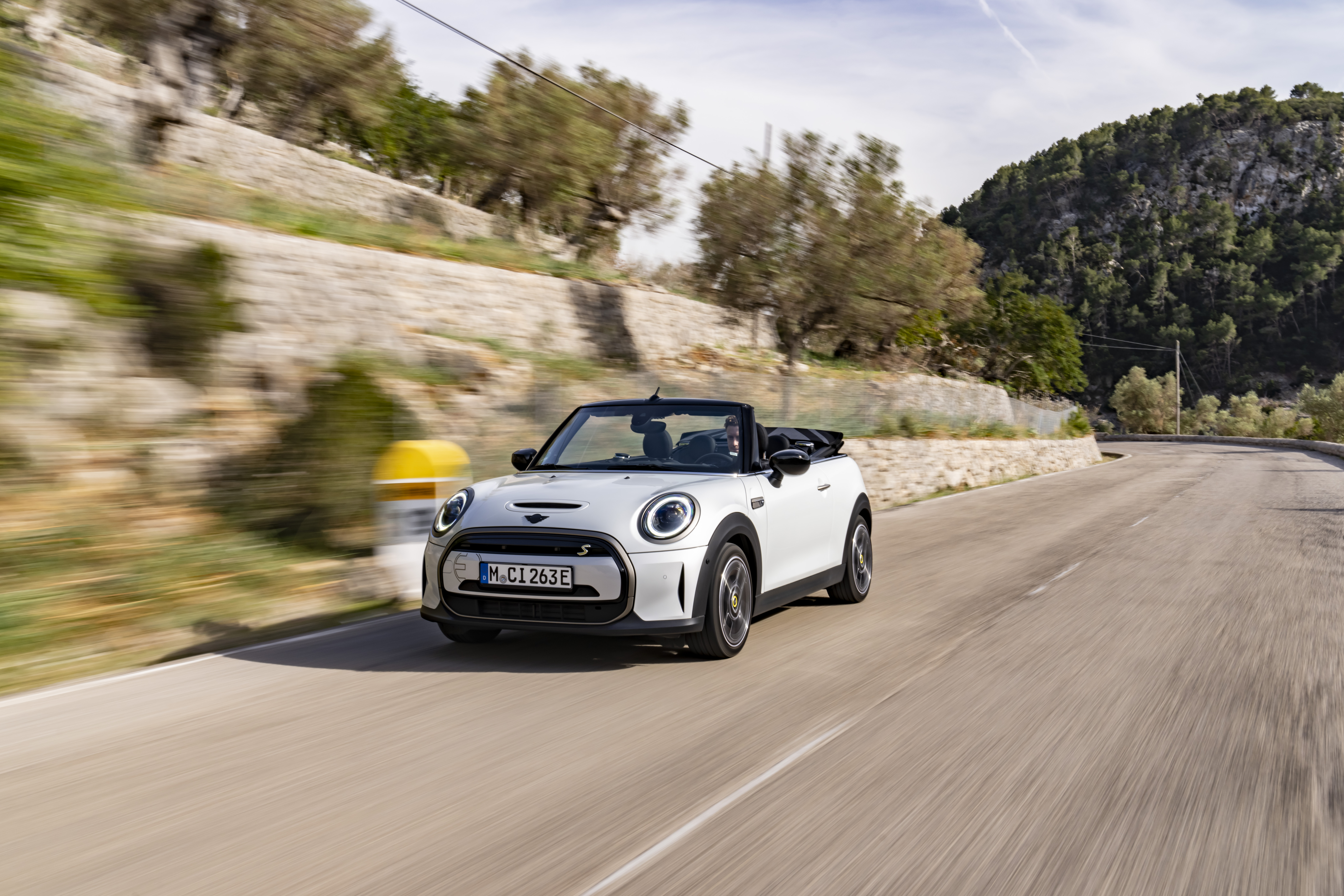 MINI Cooper SE Convertible (combined power consumption: 17.2 (WLTP) kWh/100 km; combined CO2 emissions: 0 g/km).