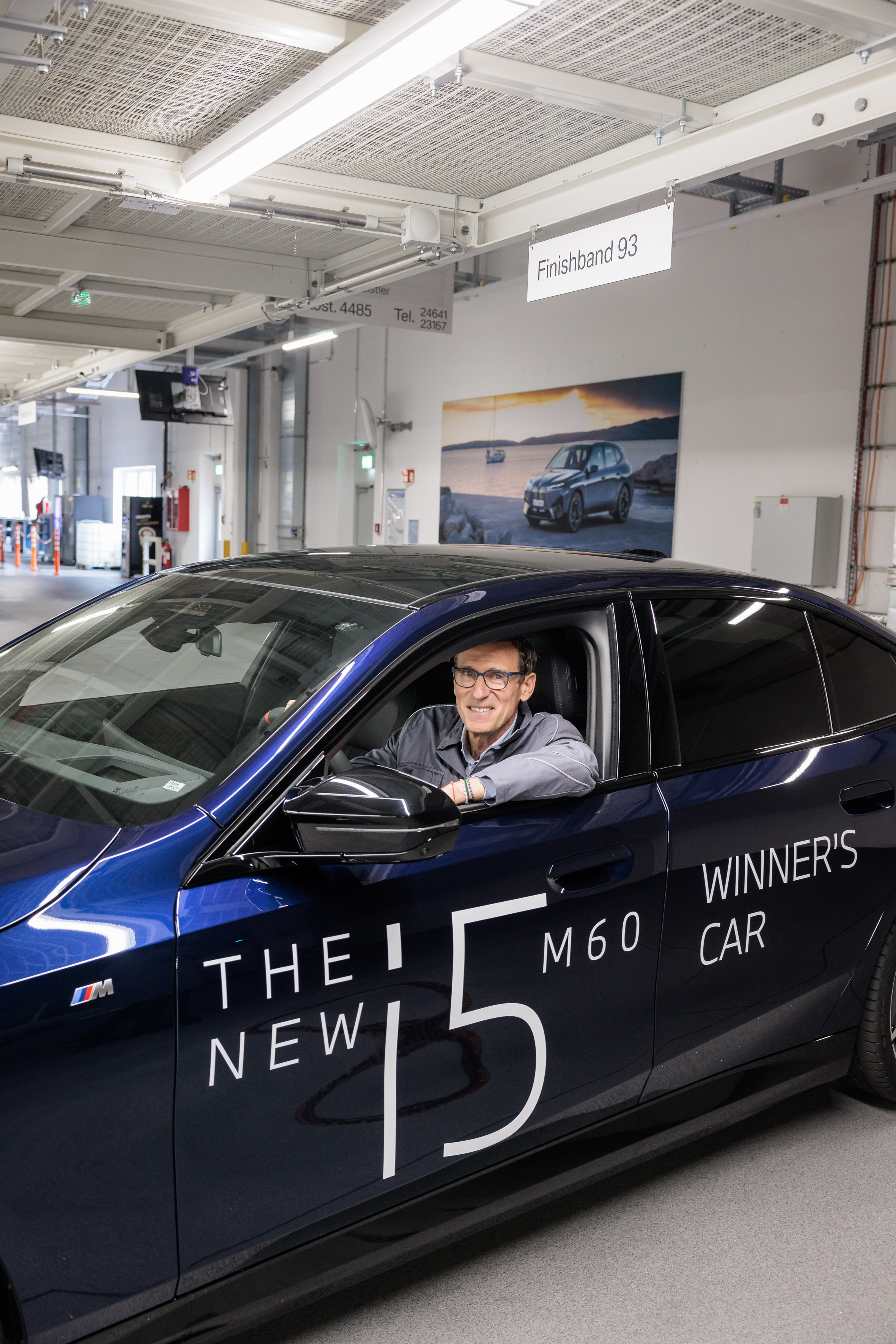 BMW Open Tournament Director Patrik Kühnen at BMW Group Plant Dingolfing with the 2024 Winner's Car, the BMW i5 M60.