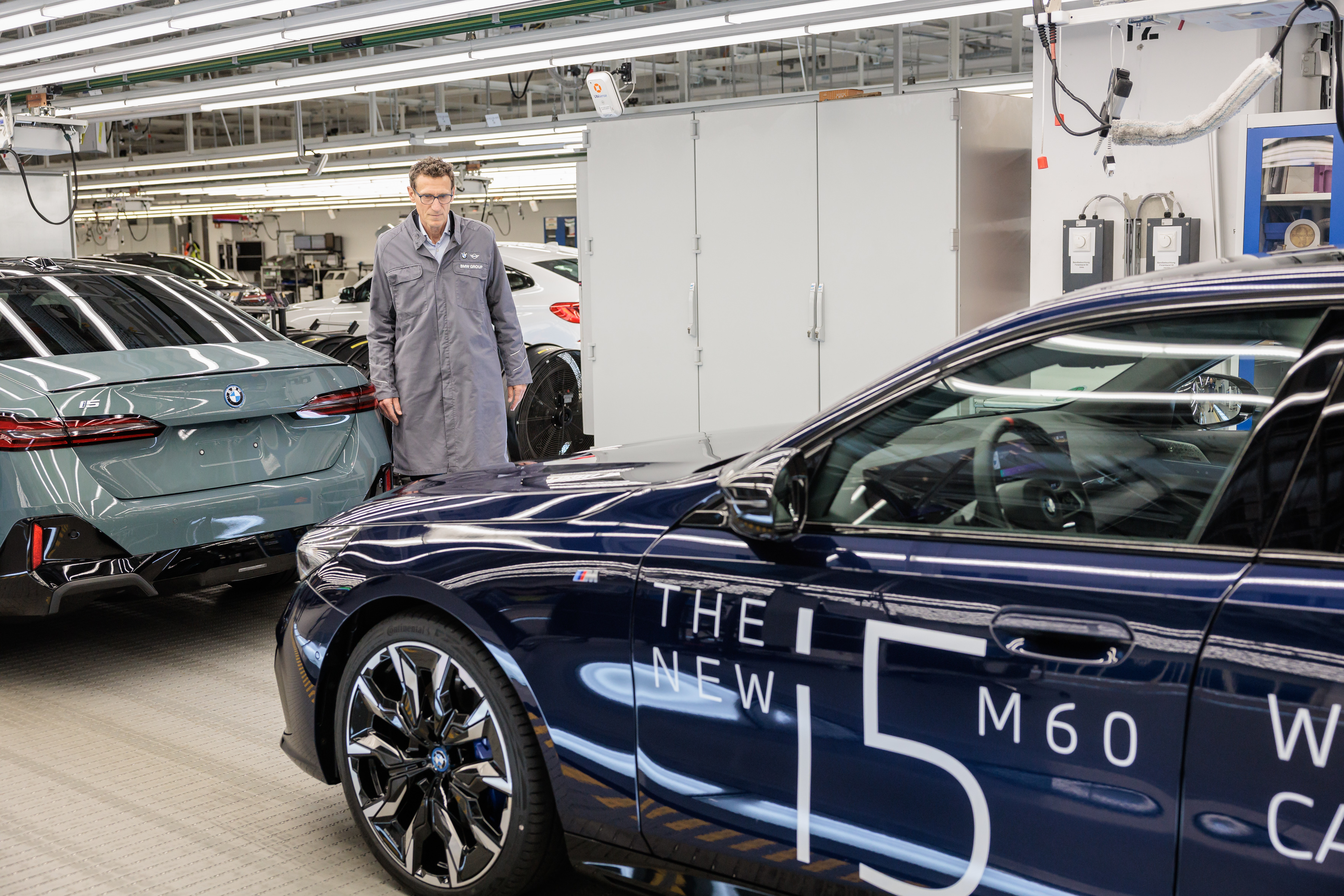 BMW Open Tournament Director Patrik Kühnen at BMW Group Plant Dingolfing with the 2024 Winner's Car, the BMW i5 M60.