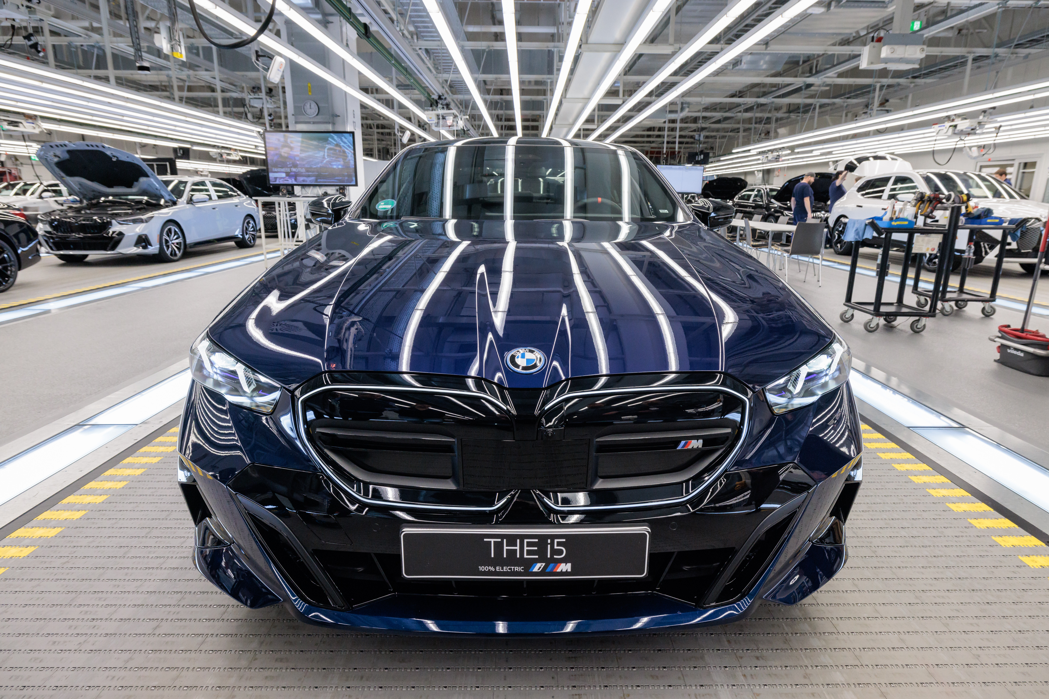 BMW Open Tournament Director Patrik Kühnen at BMW Group Plant Dingolfing with the 2024 Winner's Car, the BMW i5 M60.