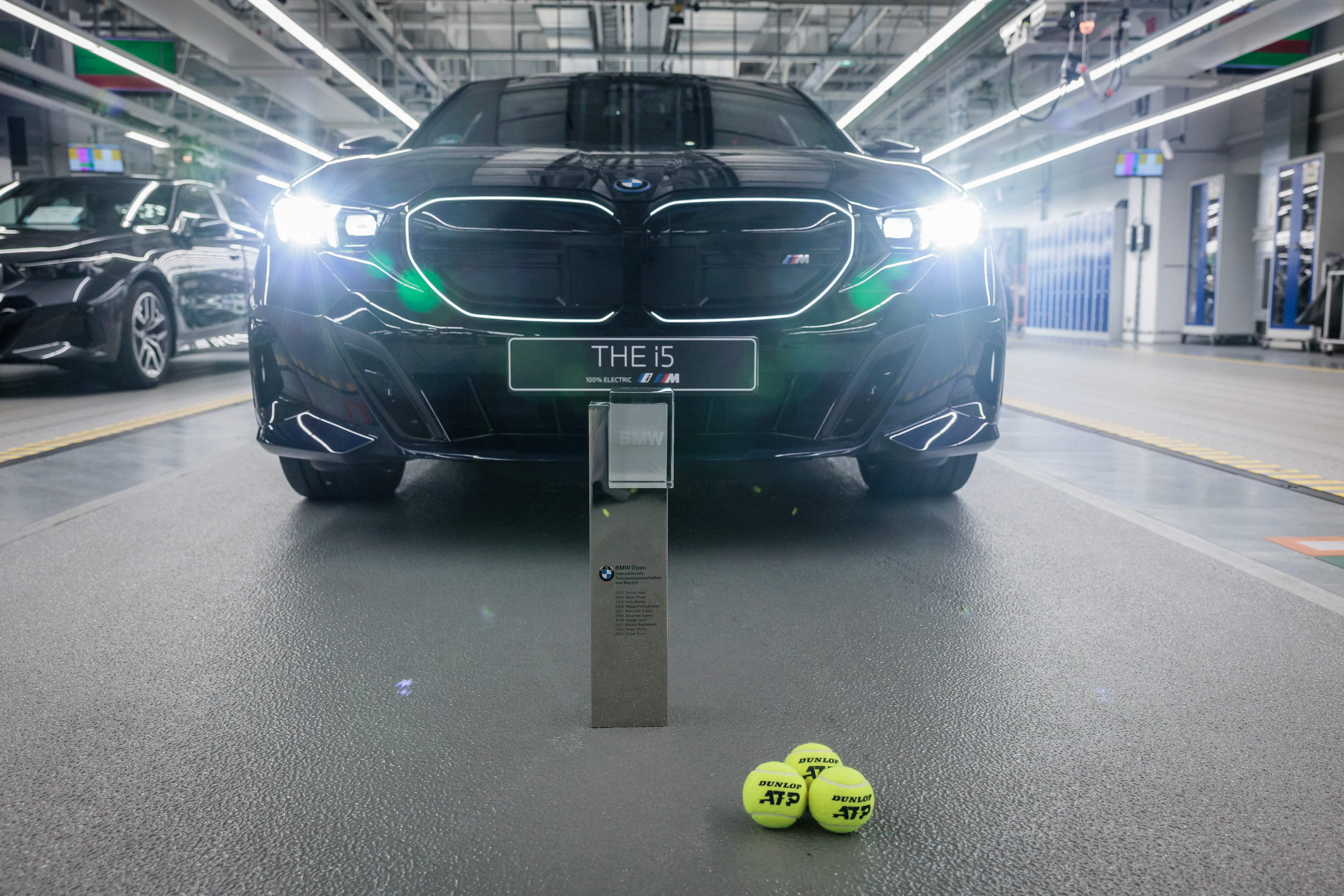 BMW Open Tournament Director Patrik Kühnen at BMW Group Plant Dingolfing with the 2024 Winner's Car, the BMW i5 M60.