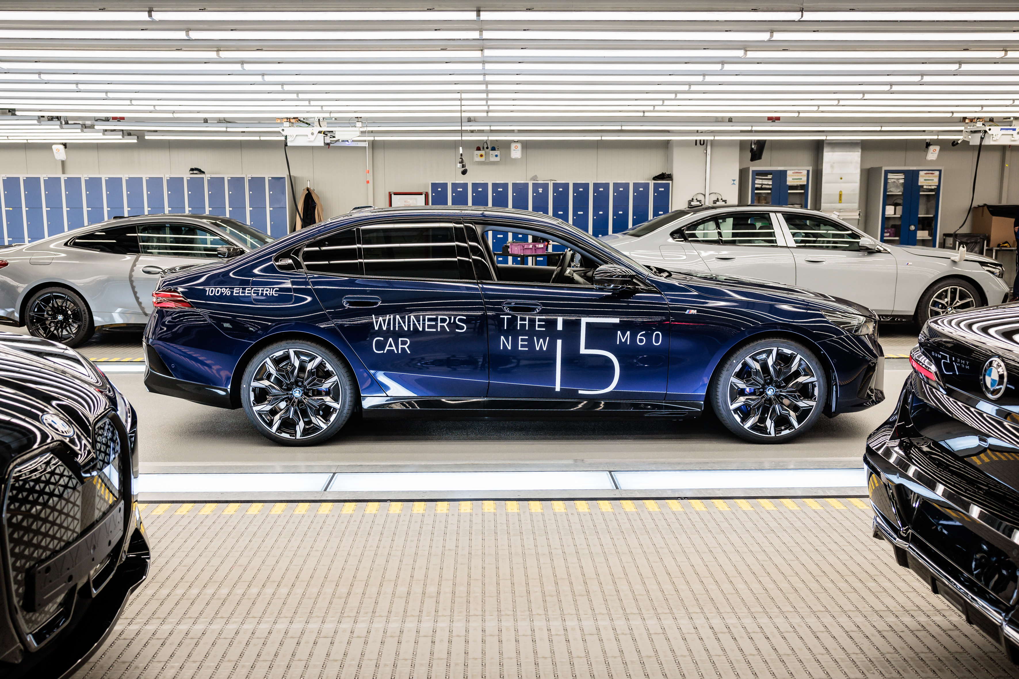 BMW Open Tournament Director Patrik Kühnen at BMW Group Plant Dingolfing with the 2024 Winner's Car, the BMW i5 M60.