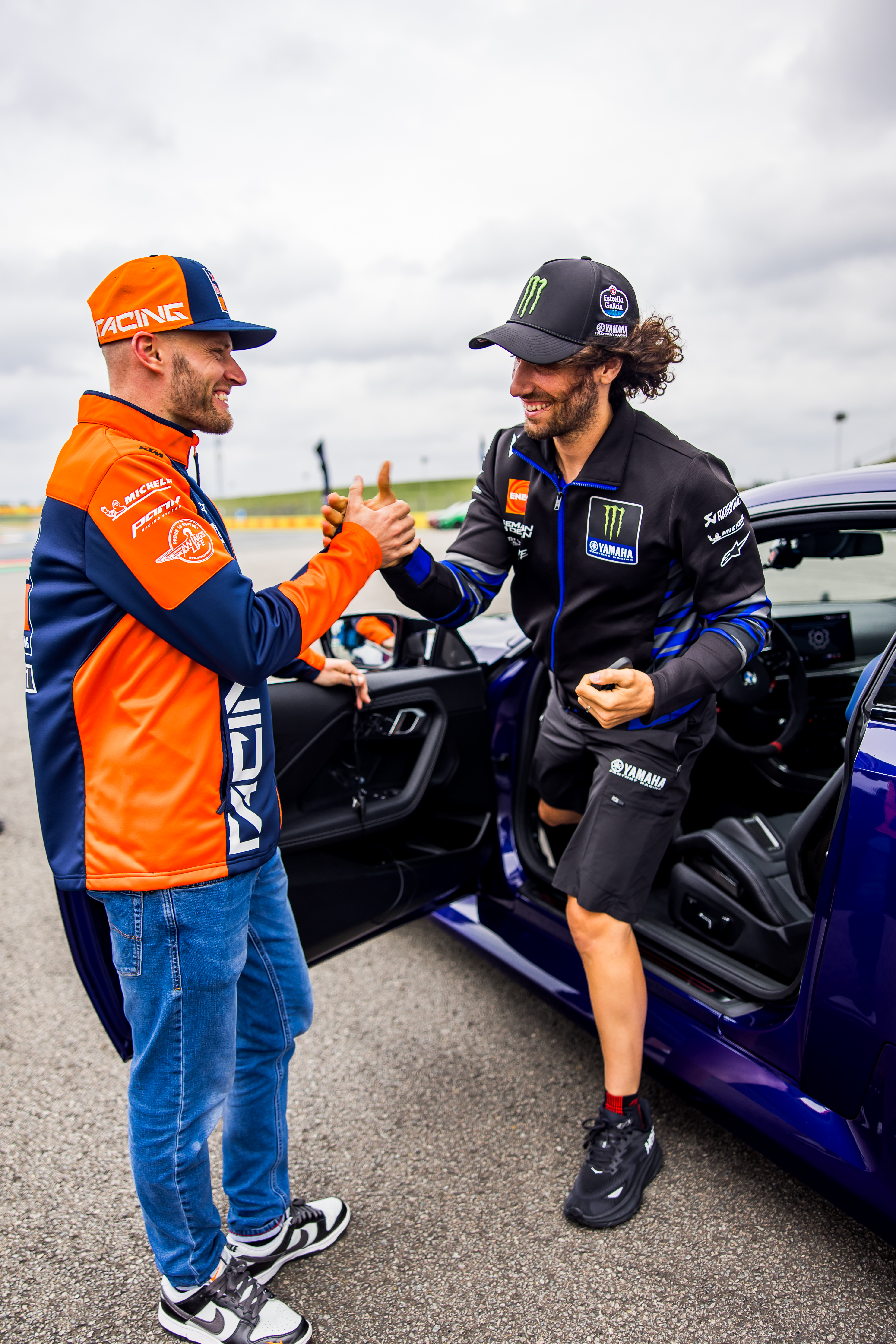 Assen (NED), 26th June 2025. BMW M GmbH, 2025 BMW M Award, MotoGP™. Unveiling 2025 winner's car BMW M2 CS, Brad Binder, Alex Rins, Drive in Reverse Challenge
