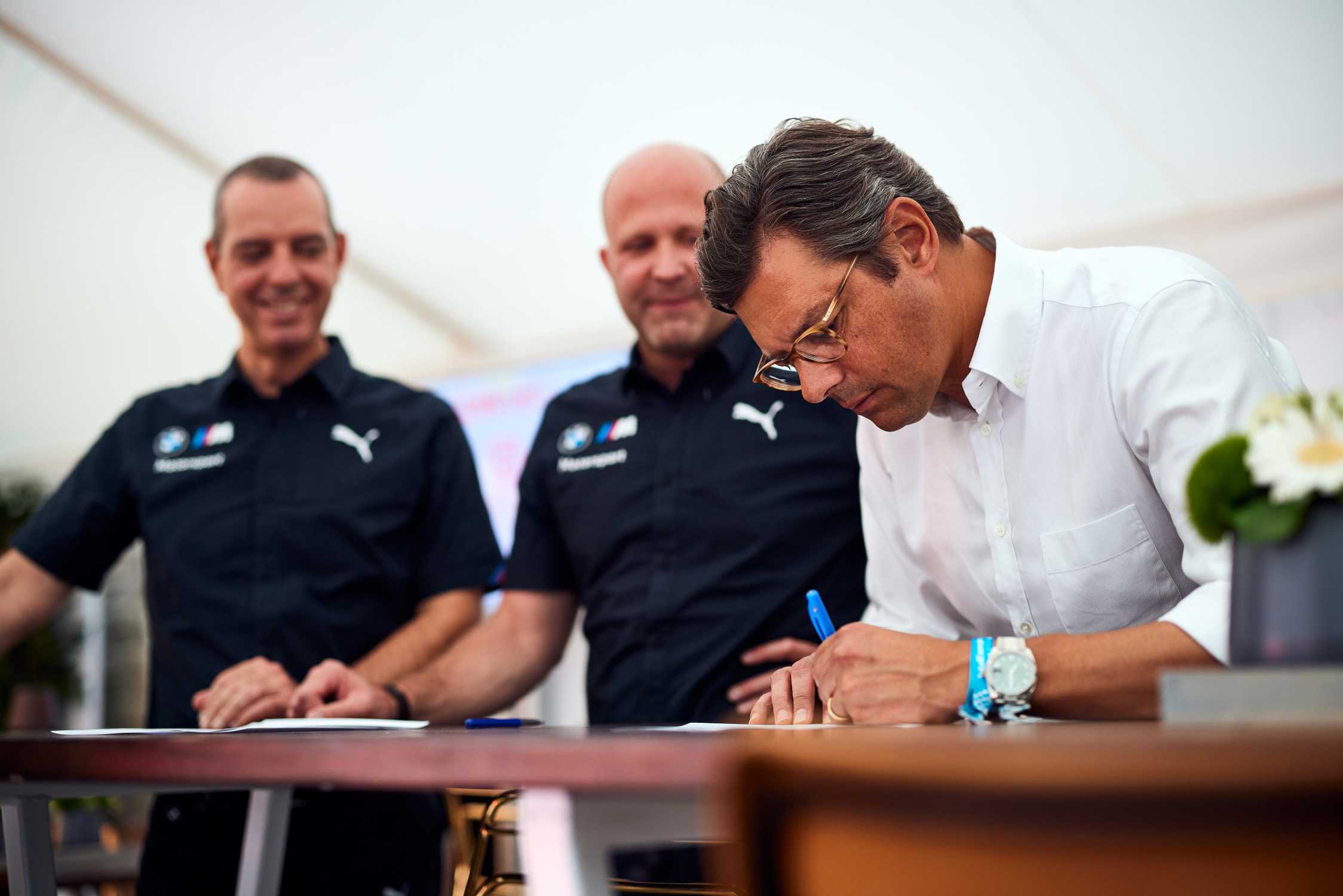 Munich (GER), 2nd August 2022. Team WRT, BMW M Motorsport, FIA World Endurance Championship, BMW M Hybrid V8, LMDh, agreement, signing, Franciscus van ...