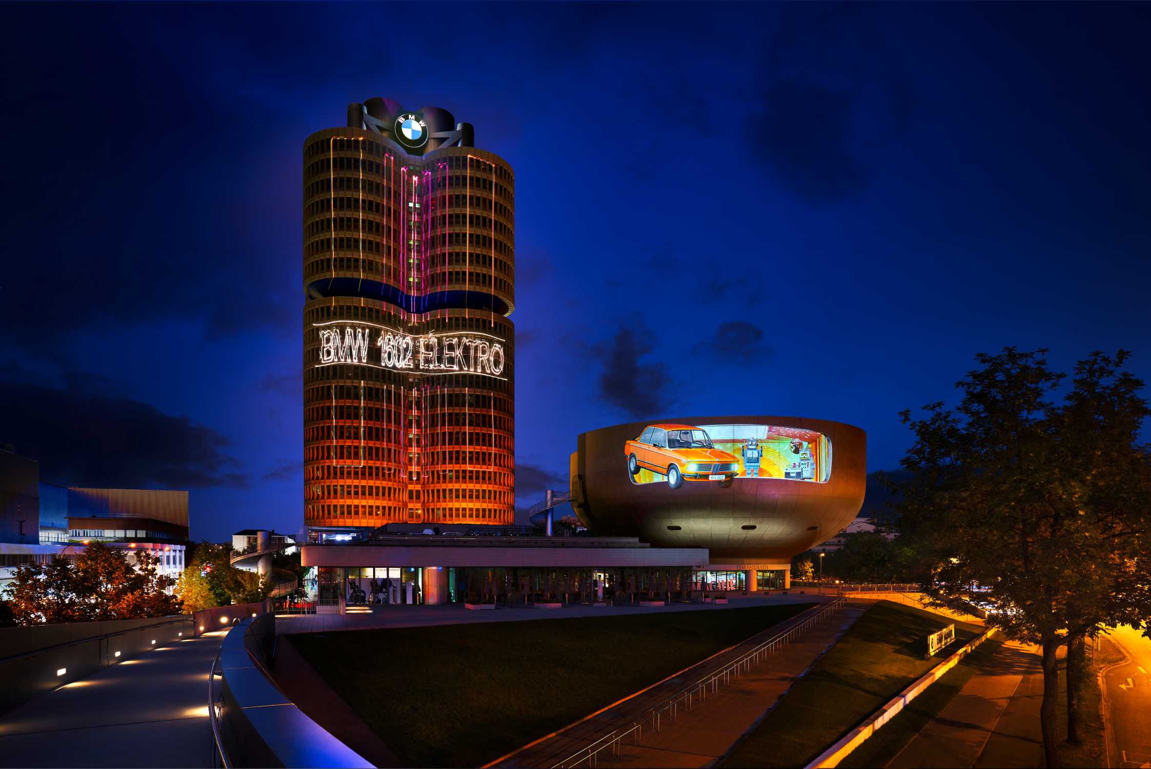 Illumination BMW Headquarters and BMW Museum - BMW Group welcomes competitors and guests to the 2022 European Championships in Munich.