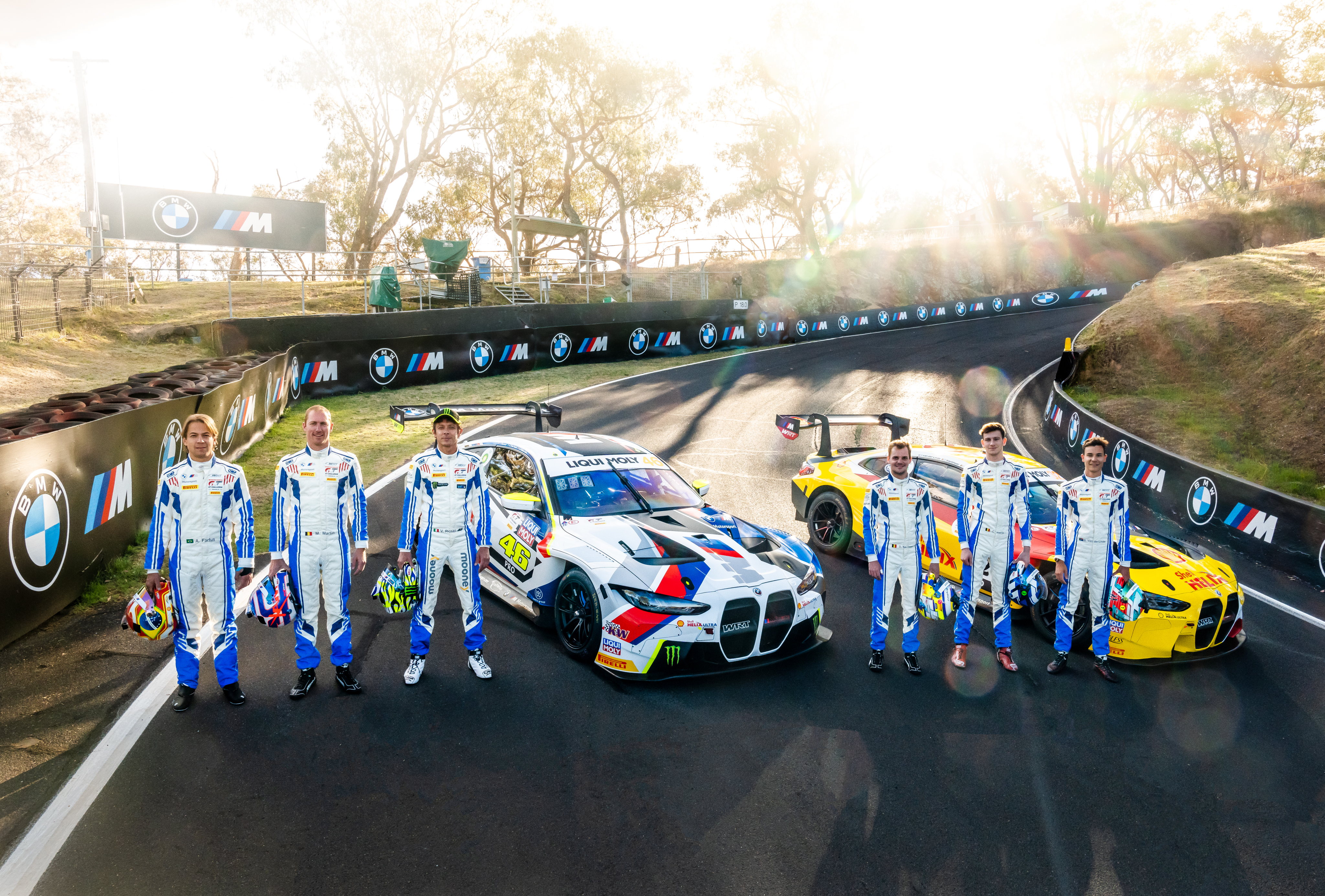 Bathurst (AUS), 2nd to 5th February 2023. BMW M Motorsport, Bathurst 12 Hour, Intercontinental GT Challenge. BMW M Team WRT, #32 Shell BMW M4 GT3, Dries Vanthoor (BEL), Sheldon van der Linde (RSA), Charles Weerts (BEL), #46 BMW M4 GT3, Augusto Farfus (BRA), Maxime Martin (BEL), Valentino Rossi (ITA).