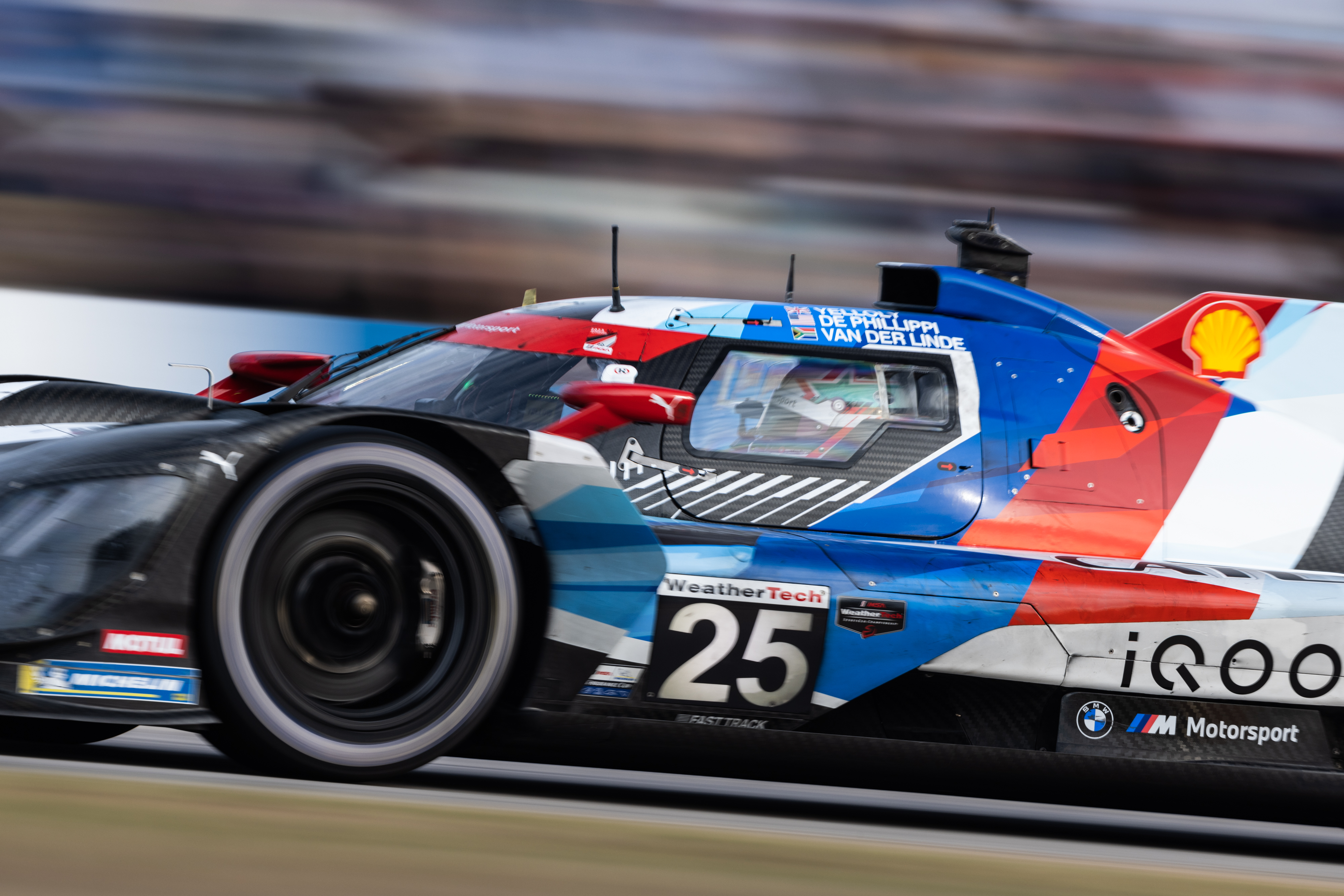 Sebring (USA), 15th to 18th March 2023. BMW M Motorsport, IMSA WeatherTech SportsCar Championship, Twelve Hours of Sebring, BMW M Team RLL, #25 BMW M Hybrid V8, Connor De Phillippi (USA), Nick Yelloly (GBR), Sheldon van der Linde (RSA), GTP class.