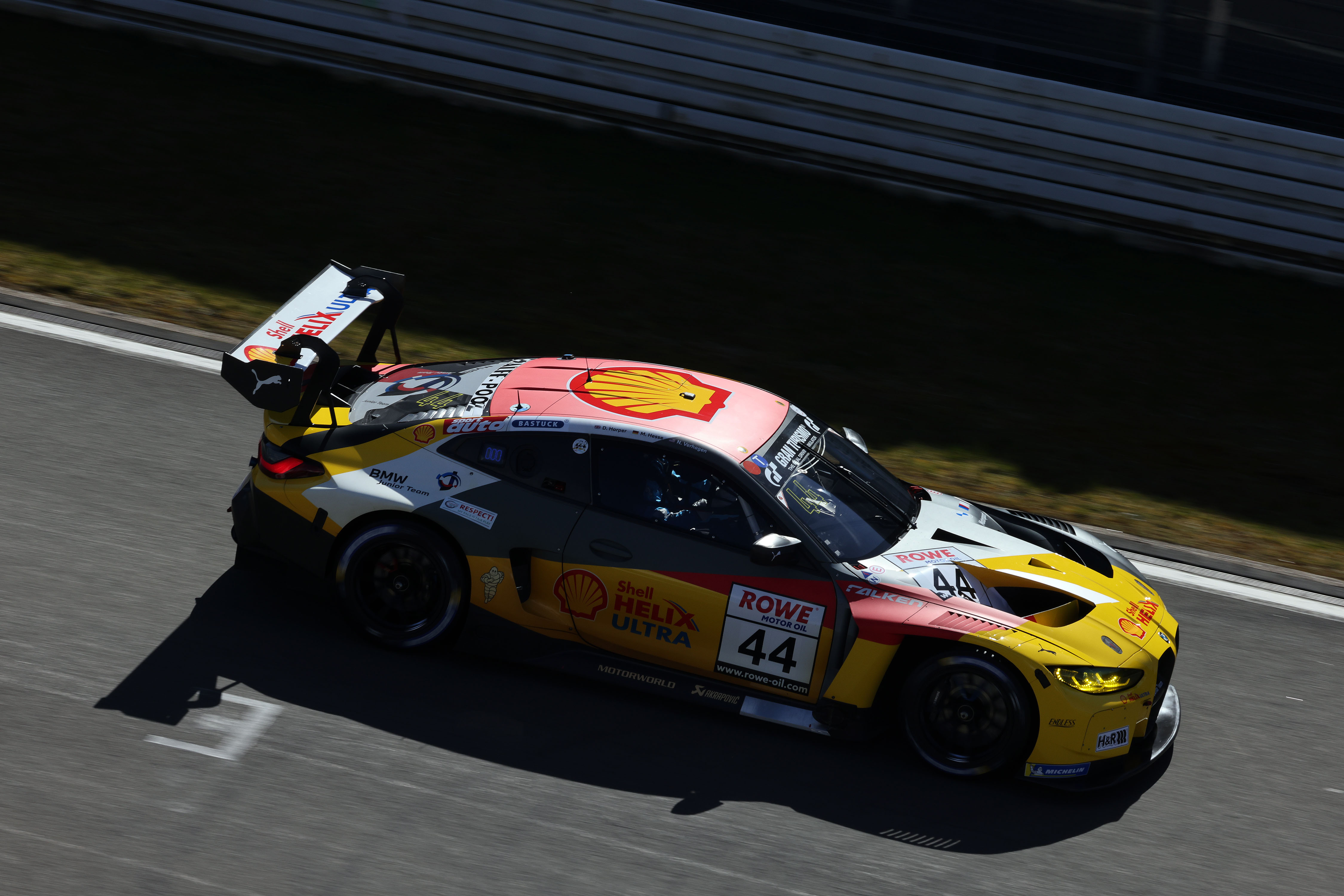 Nürburgring (GER), 14-15 April 2023. Nürburgring Endurance Series, NLS, Nordschleife, #44 BMW M4 GT3, BMW M Team RMG, Dan Harper, Max Hesse, Neil Verhagen, BMW Junior Team.
