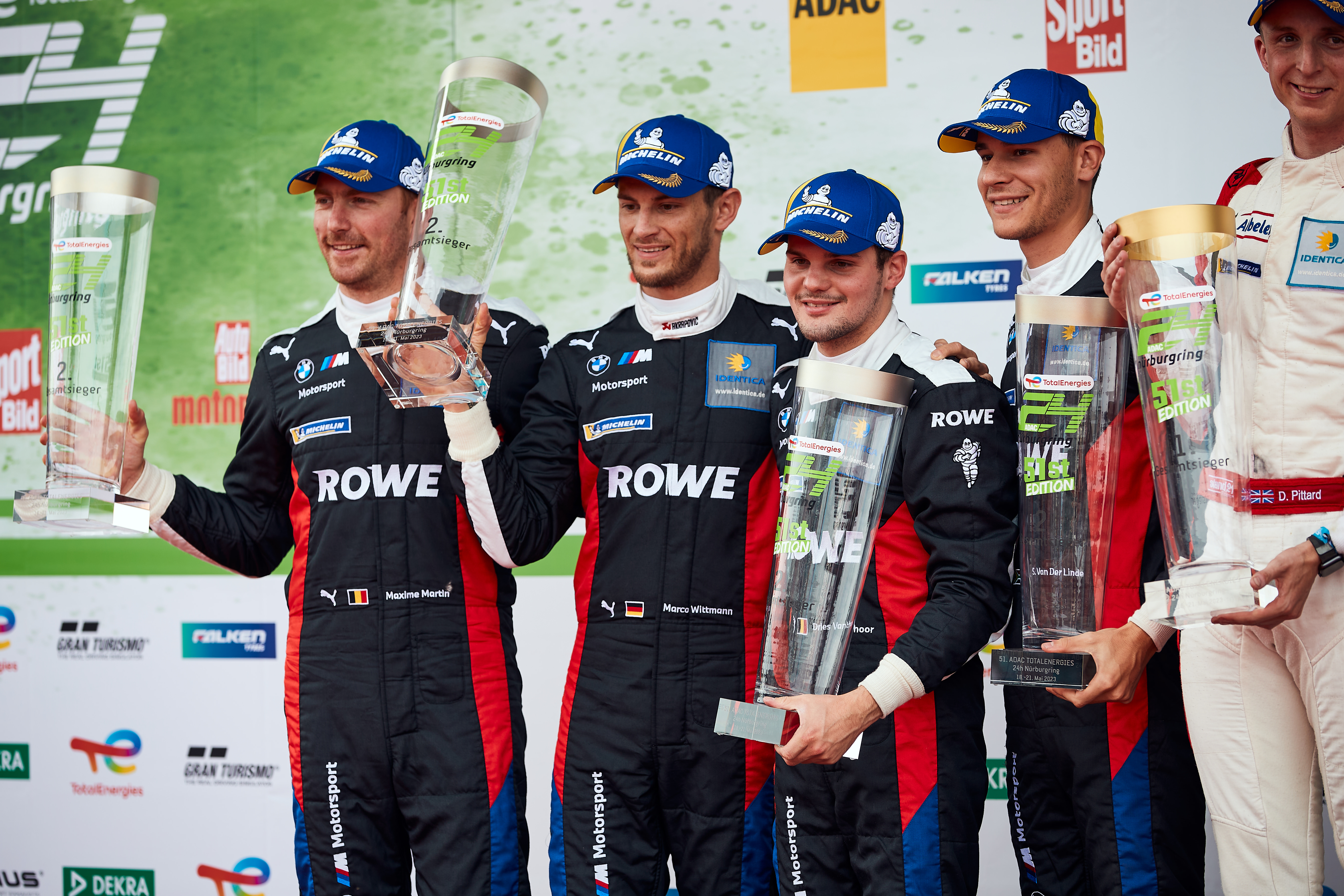 Nürburgring (GER), 18th to 21st May 2023. BMW M Motorsport, 24 Hours Nürburgring 2023. ROWE Racing, #98 BMW M4 GT3, Marco Wittmann (GER), Sheldon van der Linde (RSA), Maxime Martin (BEL), Dries Vanthoor (BEL).