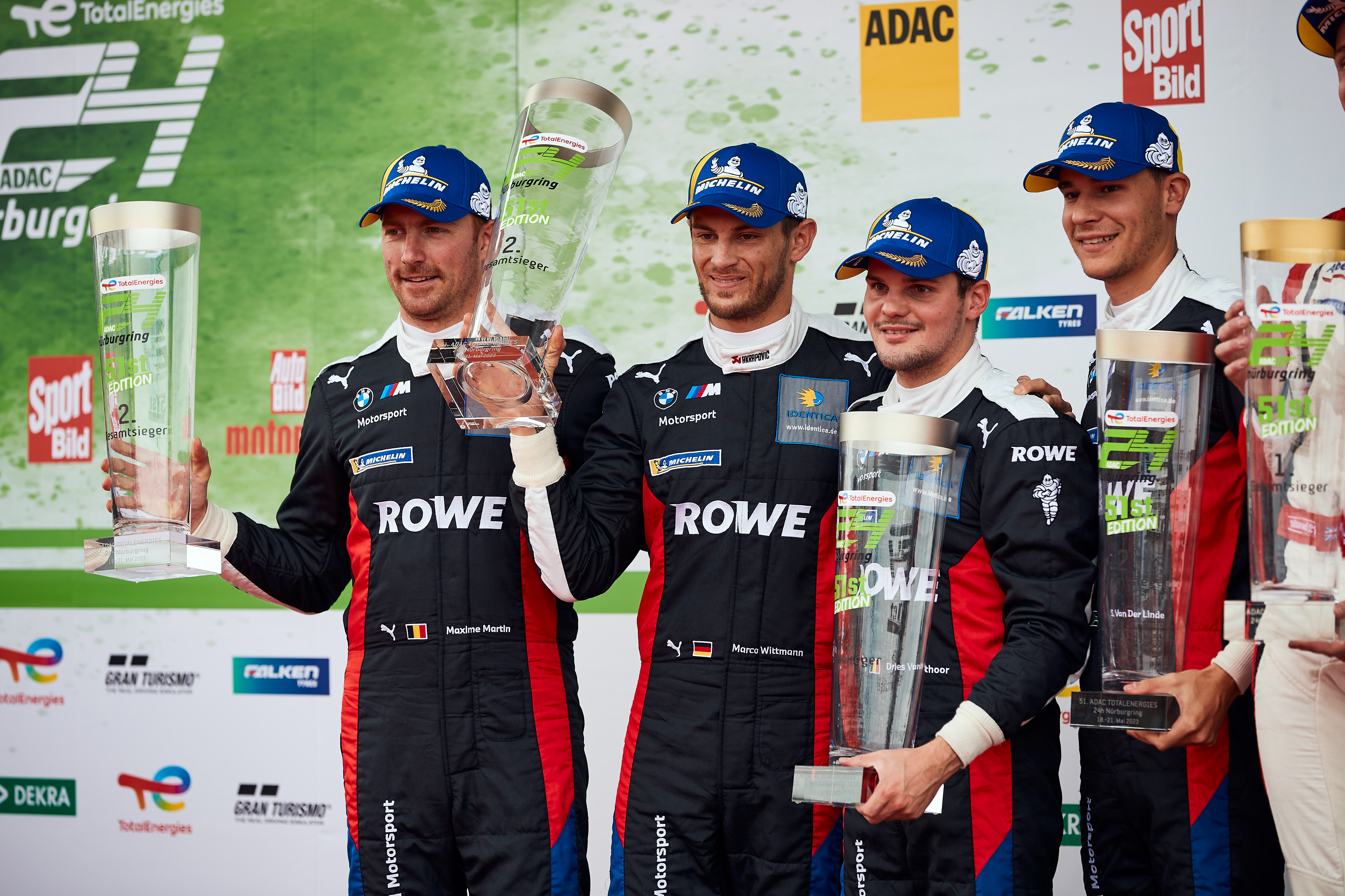Nürburgring (GER), 18th to 21st May 2023. BMW M Motorsport, 24 Hours Nürburgring 2023. ROWE Racing, #98 BMW M4 GT3, Marco Wittmann (GER), Sheldon van der Linde (RSA), Maxime Martin (BEL), Dries Vanthoor (BEL).